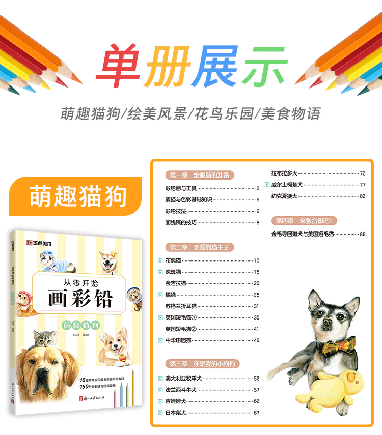 墨点美术 从零开始画彩铅萌趣猫狗初学者入门技法讲解自学手绘教程书
