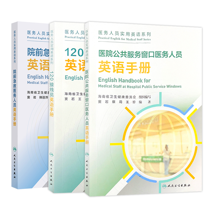 书名:【全3册】院前急救医务人员英语手册+120接线员英语手册(培训教材)+医院公共服务窗口医务人员英语手册(培训教材)