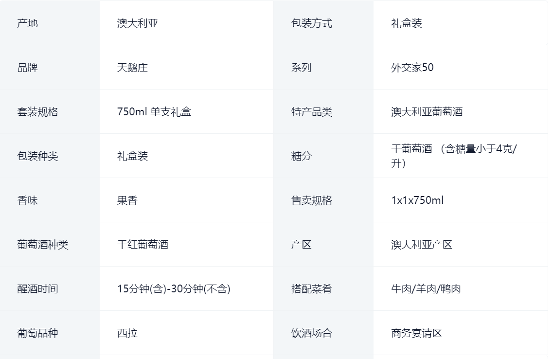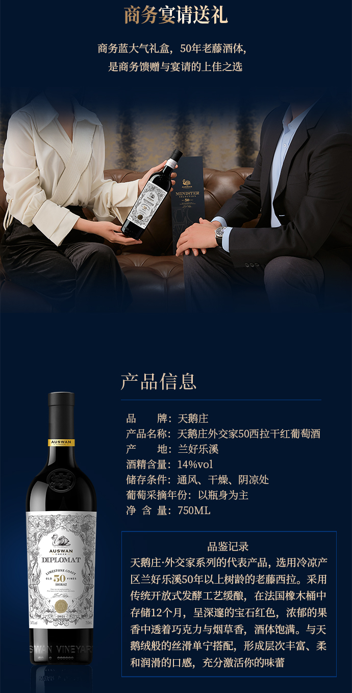 天鹅庄外交家50 西拉干红葡萄酒 750ml 礼盒装商务用酒