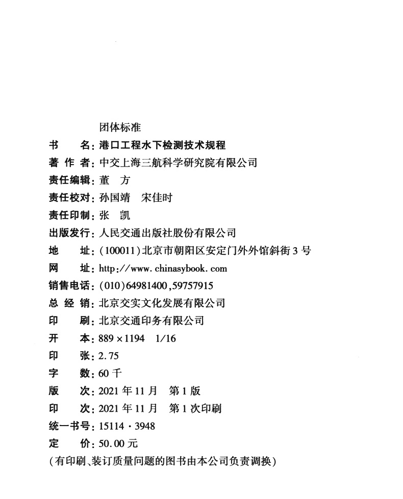 书名:港口工程水下检测技术规程
