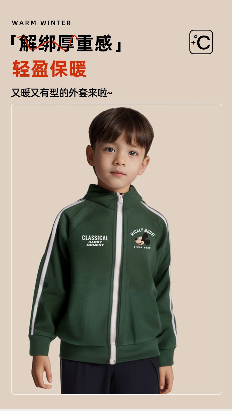 士尼男童外套冬季加厚加绒2024新款洋气儿童保暖上衣男大童冬装