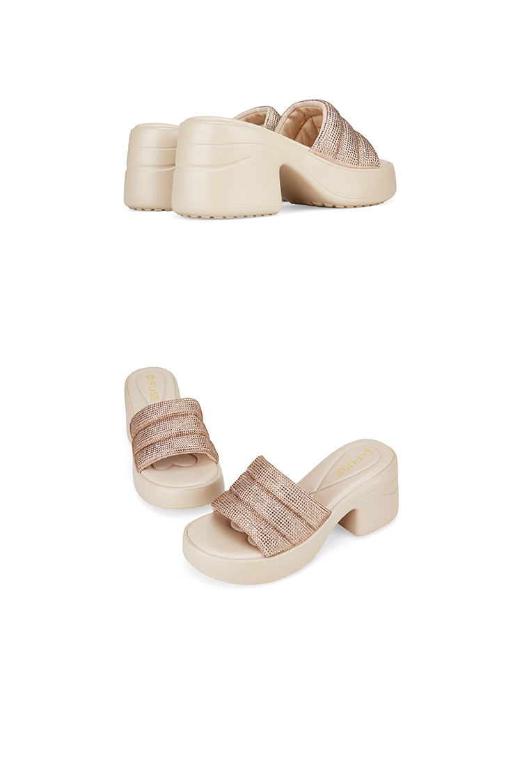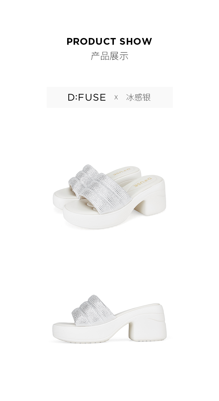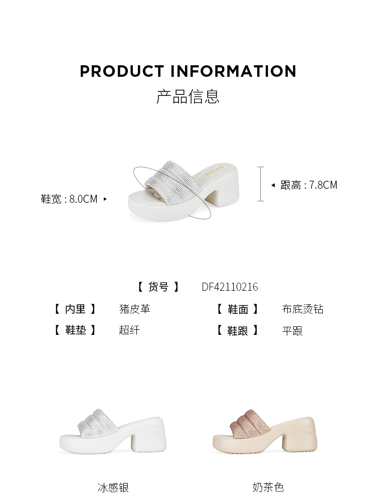 D:FUSE迪芙斯2024夏新款云感厚底膨胀感宽面烫钻凉拖鞋DF42110216