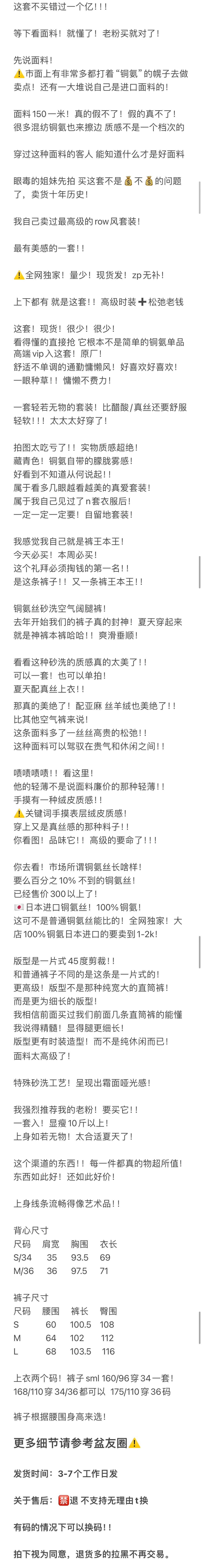 重磅推荐!现货!Row风铜氨套装 立体剪裁 背心上衣/松紧阔腿裤 日本进口 100%铜氨无补货!