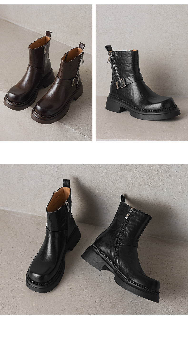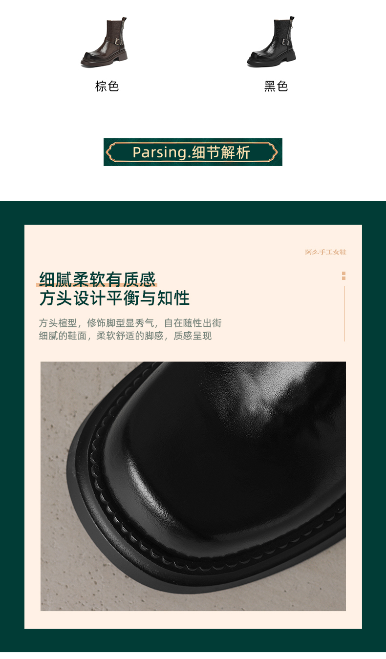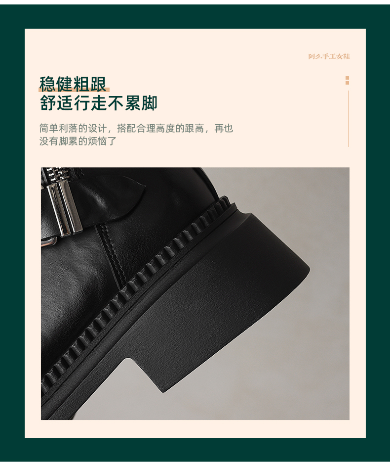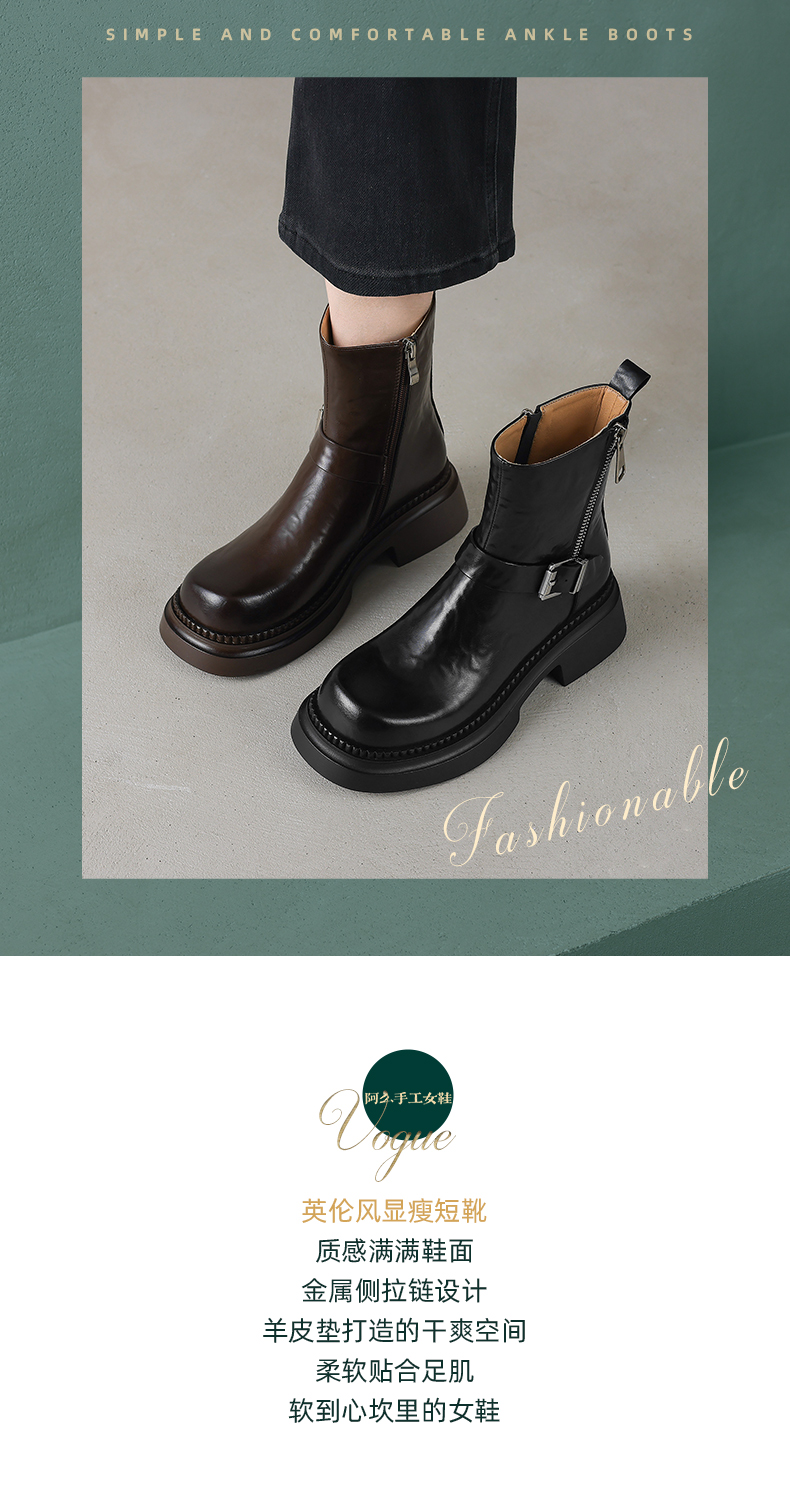 阿么手工女鞋时尚皮带扣休闲风短靴女2025新款软底职场时装靴5CM