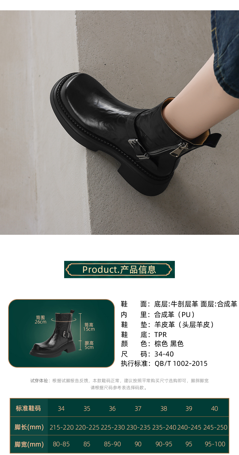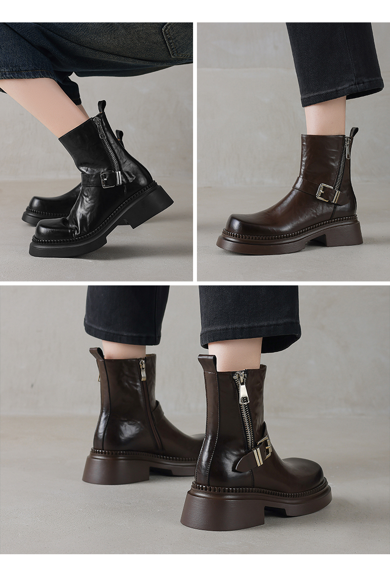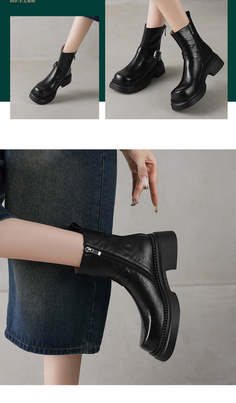 阿么手工女鞋时尚皮带扣休闲风短靴女2025新款软底职场时装靴5CM