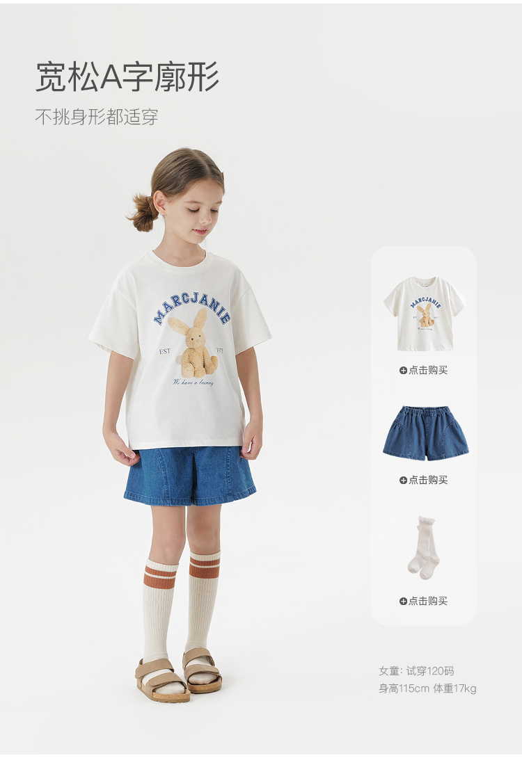 【马克珍妮 法式】女童宽松A版软牛仔短裤儿童裤子夏装新款550913