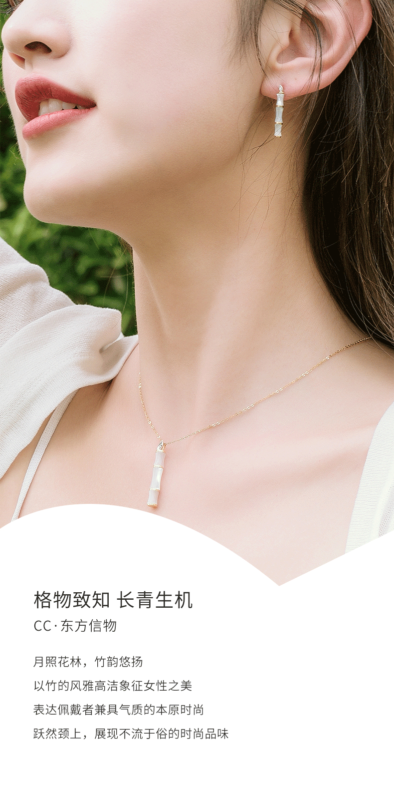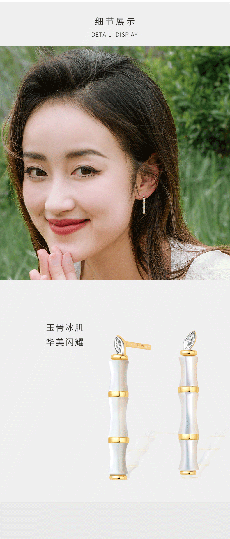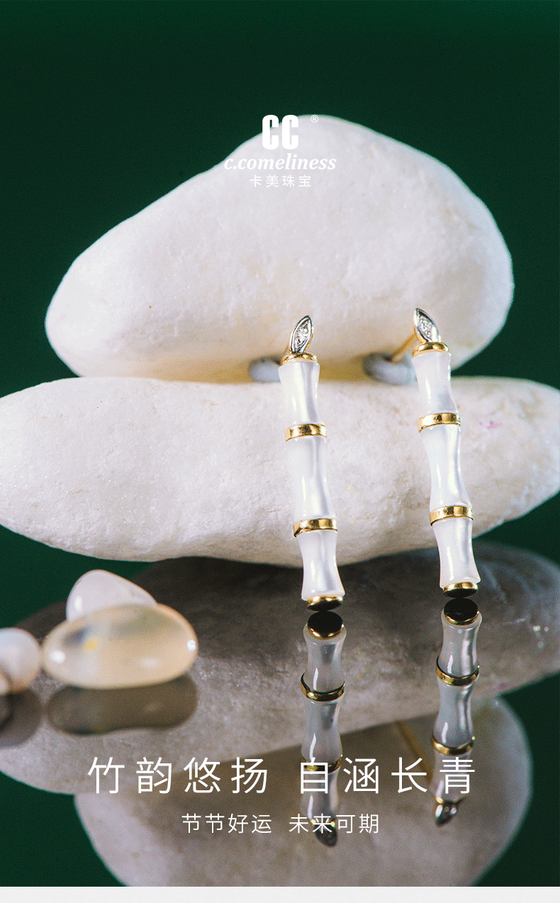[东方幸趣]18K金贝母镶钻耳饰#修篁