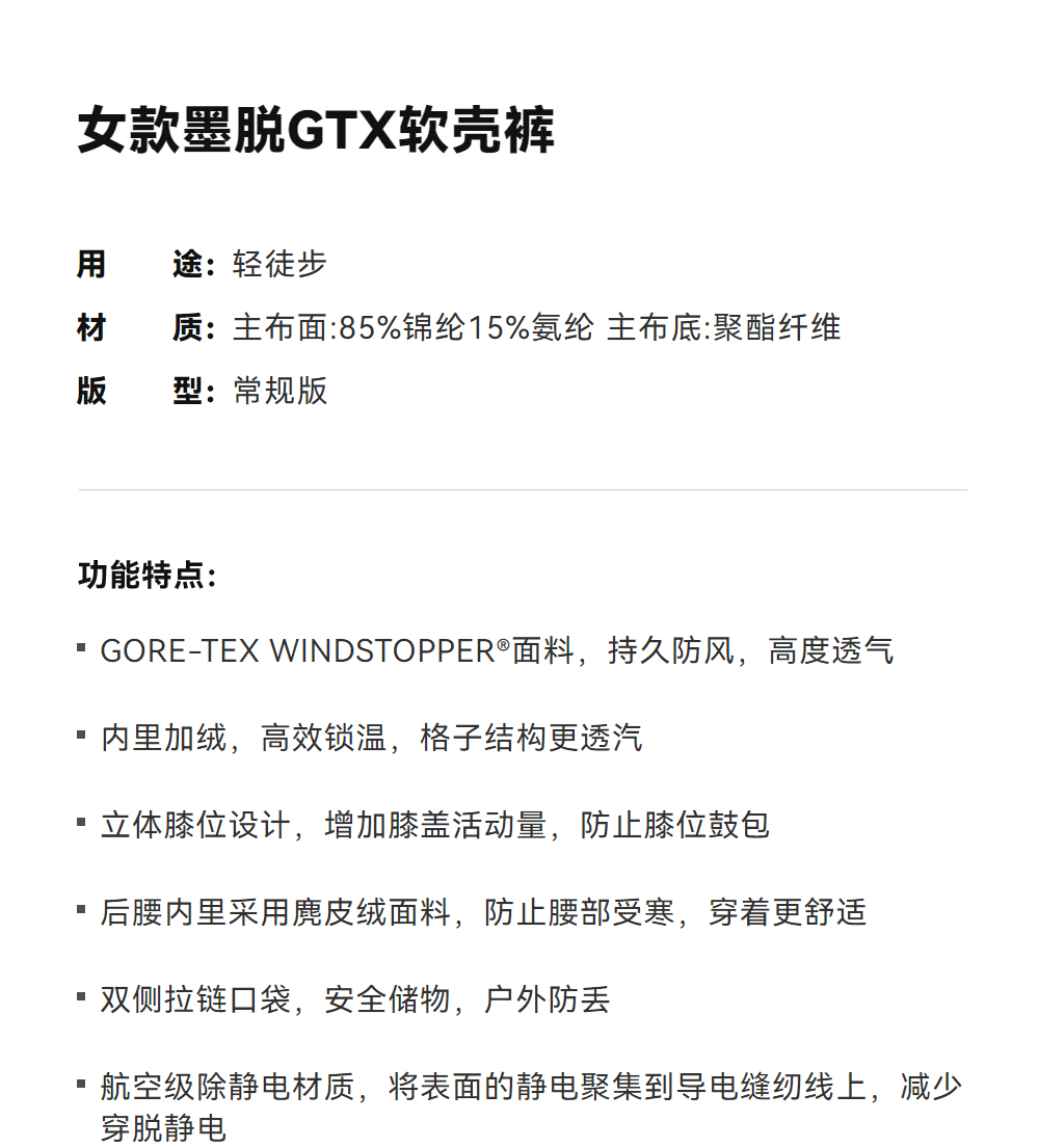 KAILAS凯乐石 户外运动 女款墨脱GTX软壳裤 KG2439405
