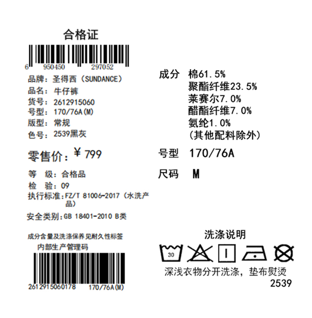 【含棉】圣得西牛仔裤2026新款男春季棉弹牛仔布休闲百搭直筒裤