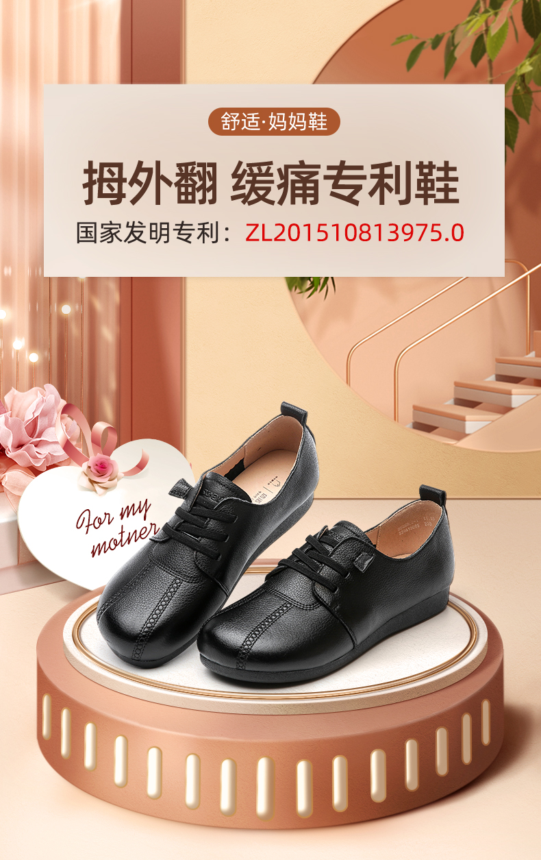 信诺真皮妈妈鞋拇指外翻宽脚胖脚女鞋春秋款中老年人平底软底皮鞋22Q5992-1