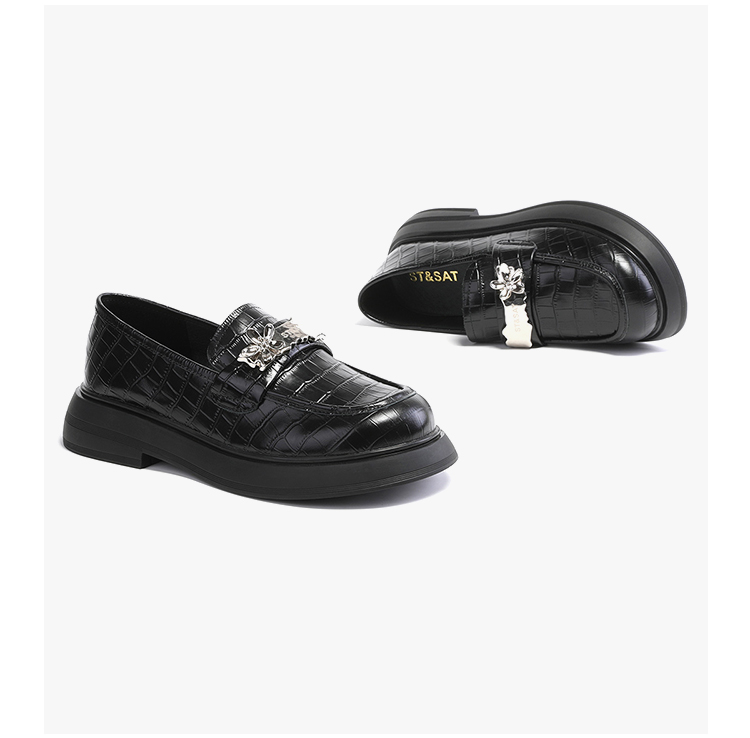 星期六时尚复古金属扣饰粗方跟乐福SS33111187