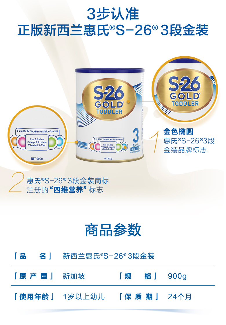 HNMG 新西兰惠氏奶粉 S26金装 3段900g (新加坡版本)