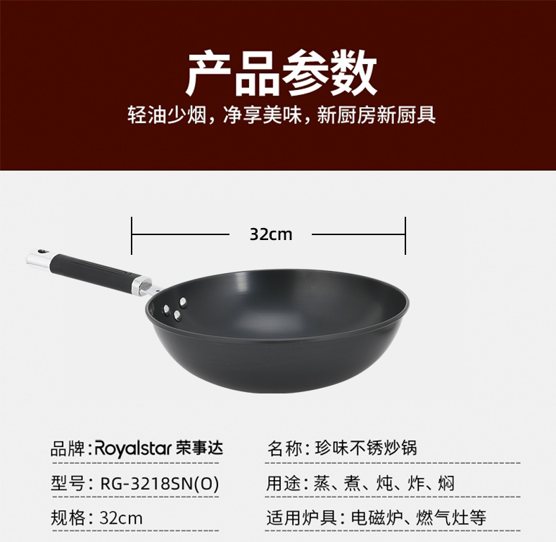 荣事达 珍味不锈炒锅(32cm)RG-3218SN(O)