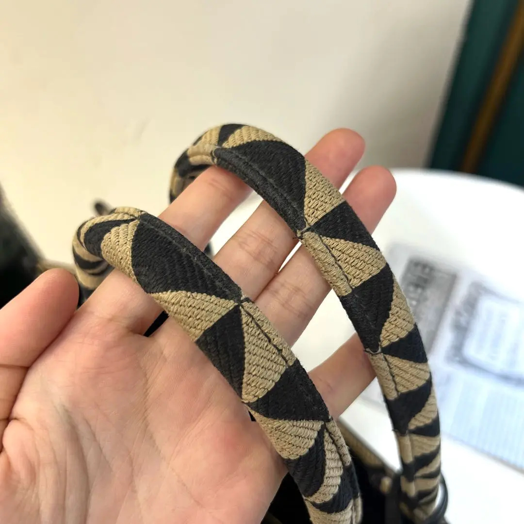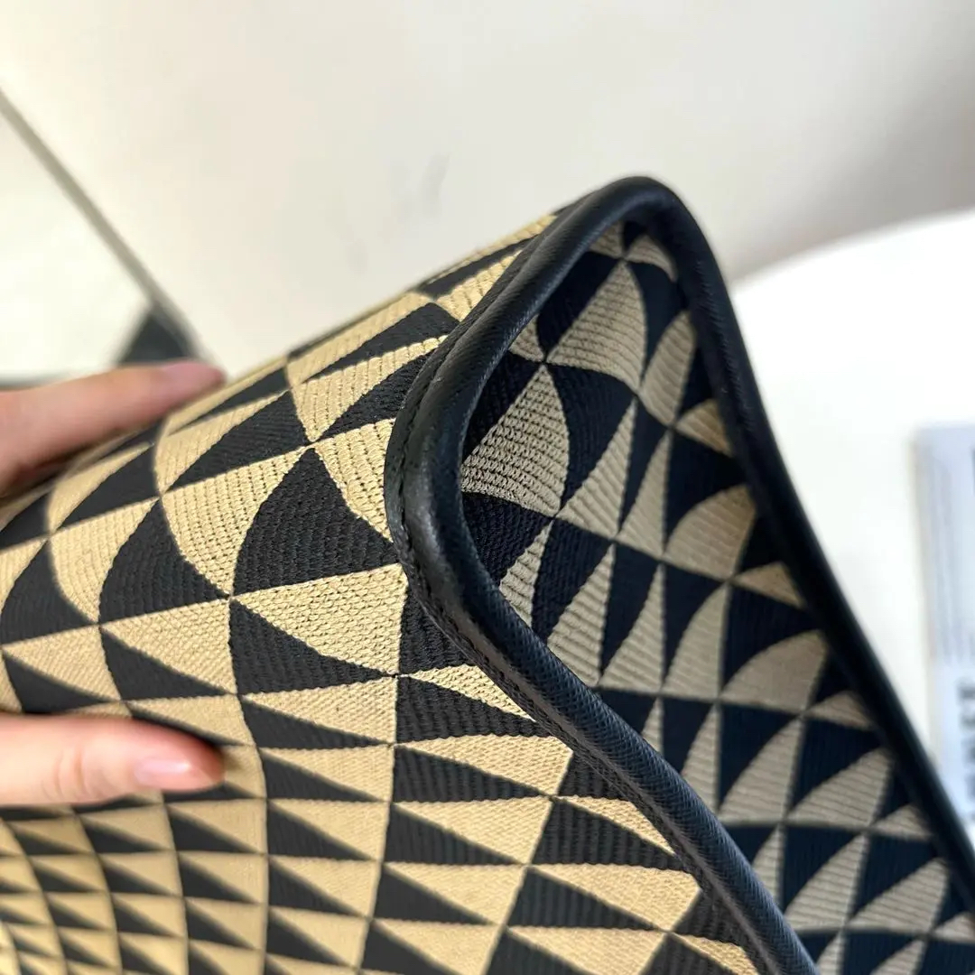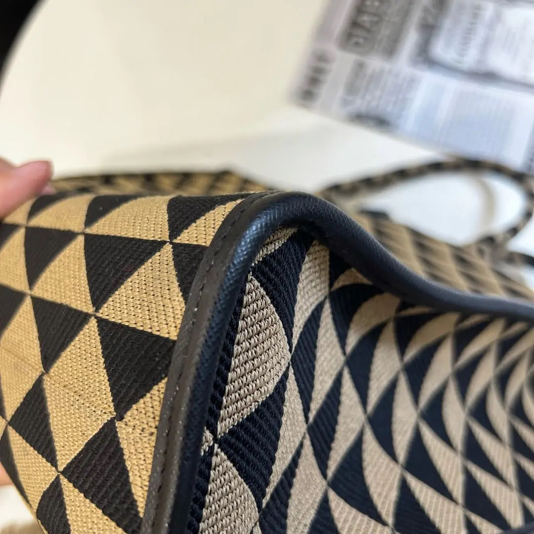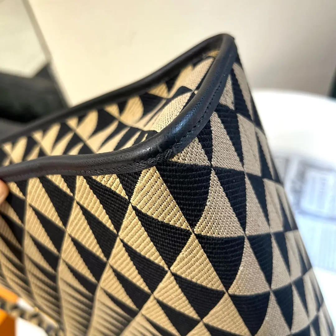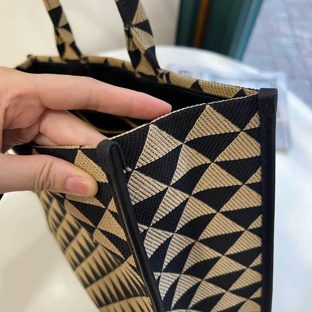 【商品详情】正品二手 Prada Symbole 黑色拼米色 刺绣三角 大号 托特包🍉95新 38x29 配件:挂件。内里正常使用脏。ss22春夏系列 织物倒三角 Prada的特殊印记