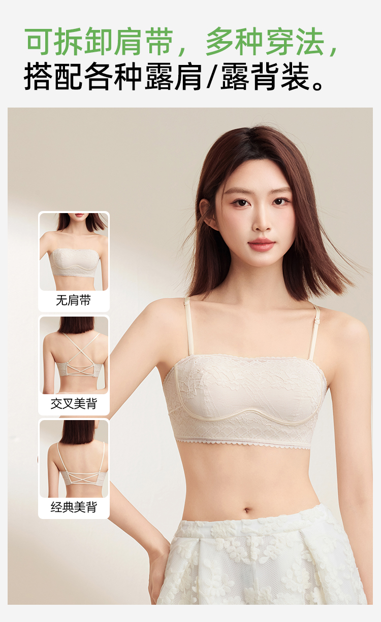 【抹胸美背】熳洁儿 小胸聚拢文胸防走光性感美背蕾丝25251506