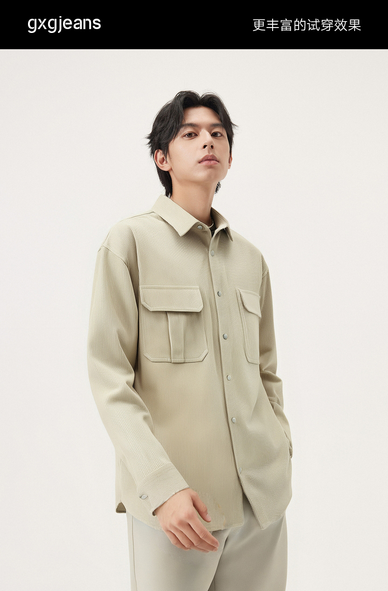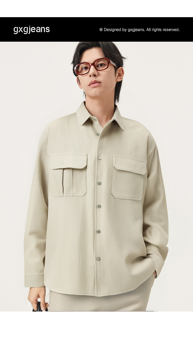 gxg.jeans男装 肌理感工装风宽松休闲翻领长袖衬衫外套 25秋