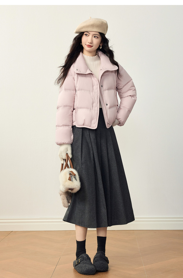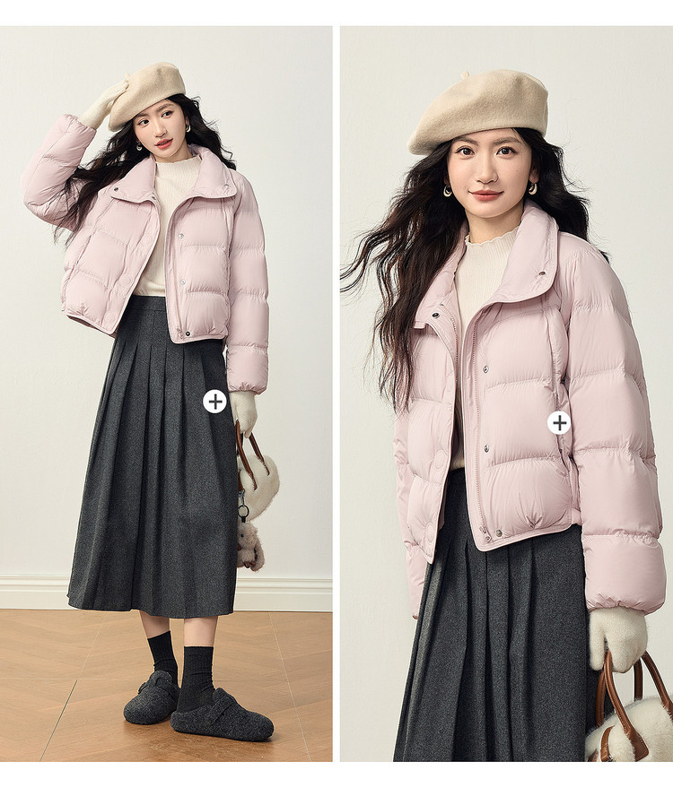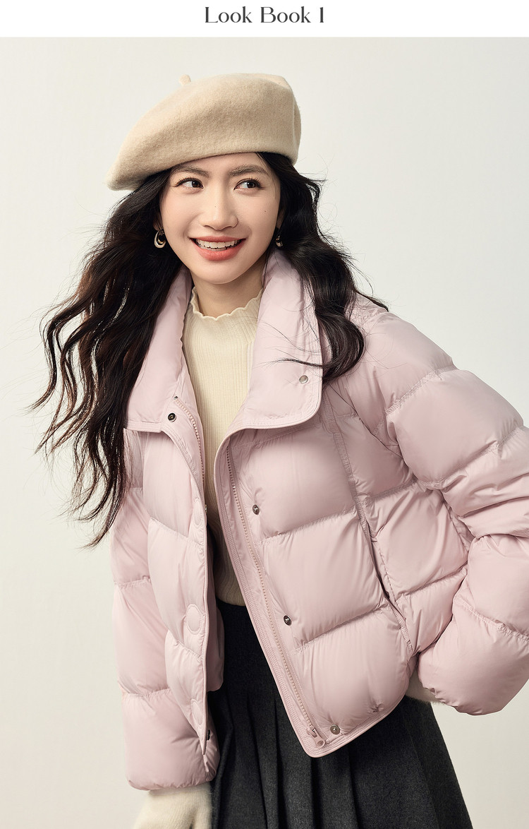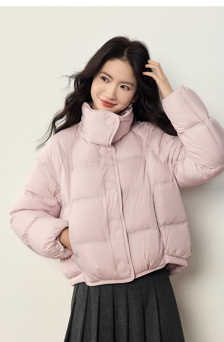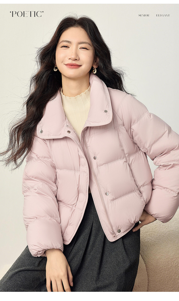 【12/24新品6.5折】熙世界茧型泡芙羽绒服女士短款90白鸭绒立领粉色外套2025冬季新款