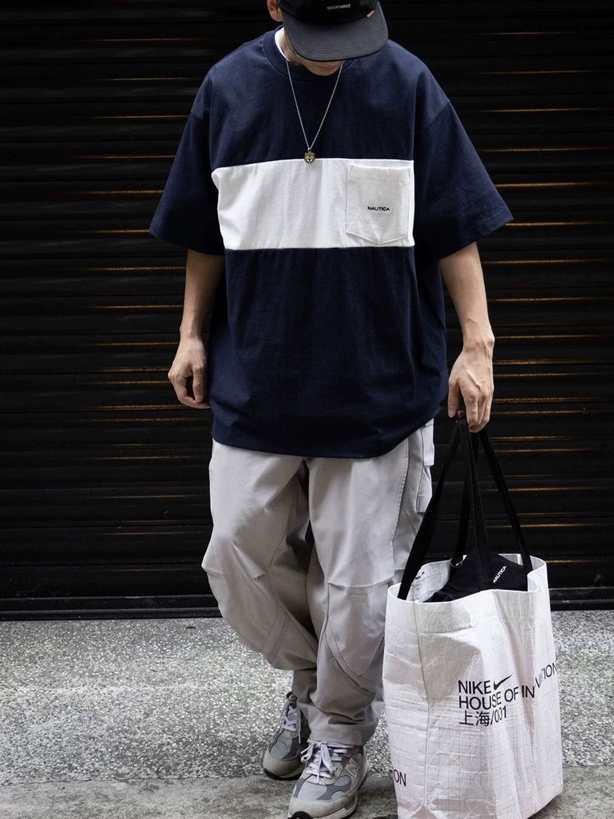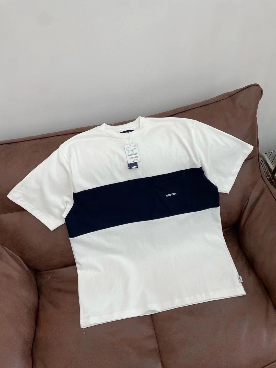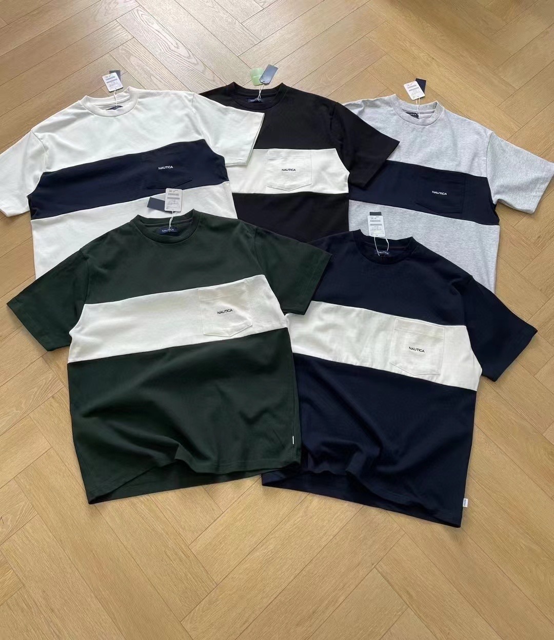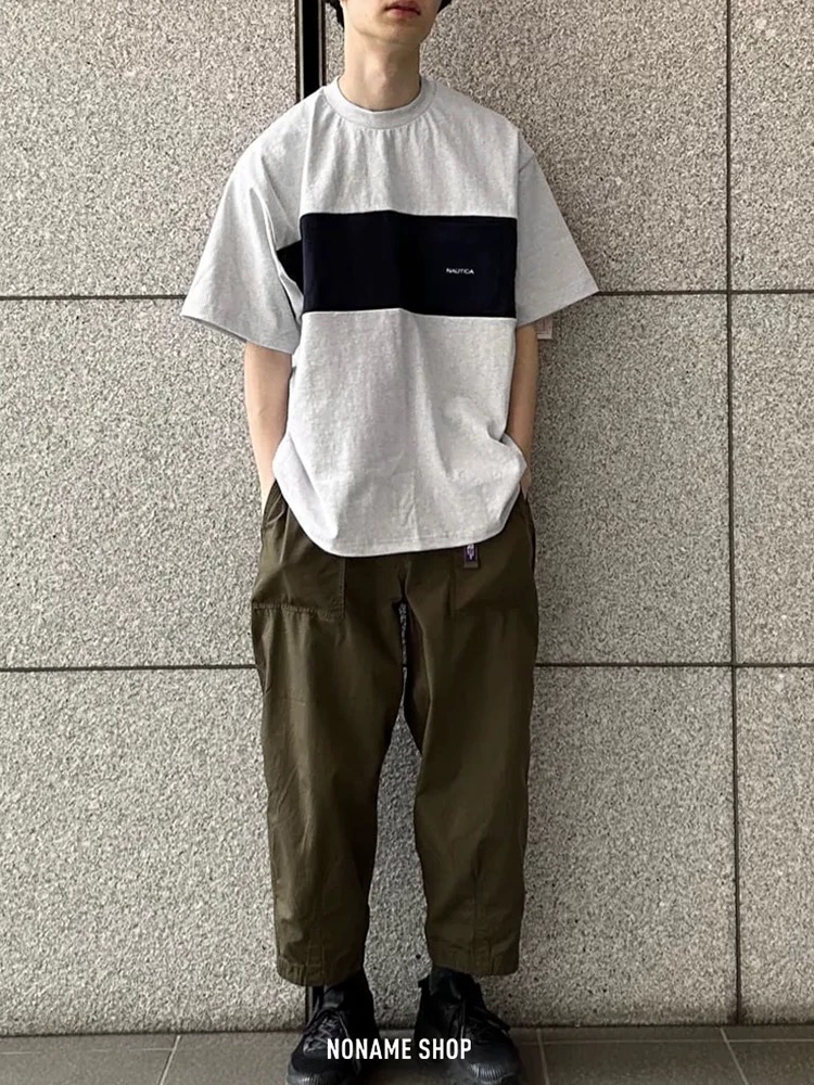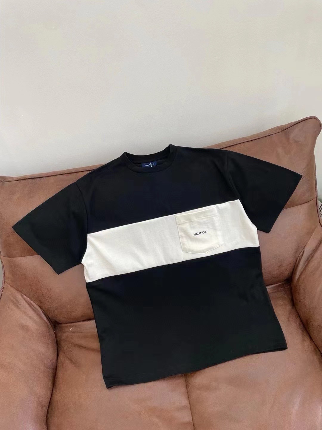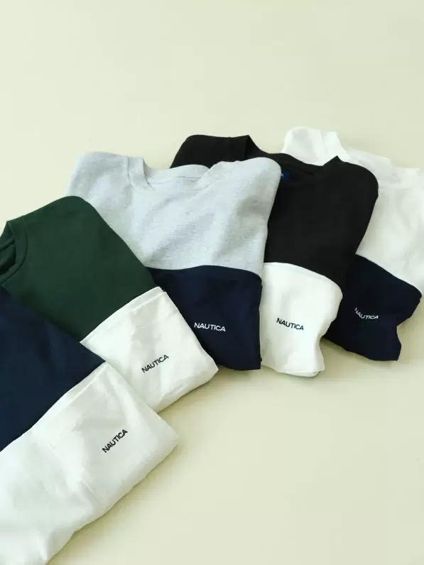 nautica 长谷川联名拼色圆领短袖,重磅宽松版型!胸前口袋字母,休闲中增加了一丝精致,日系重磅棉质,宽松版型设计!