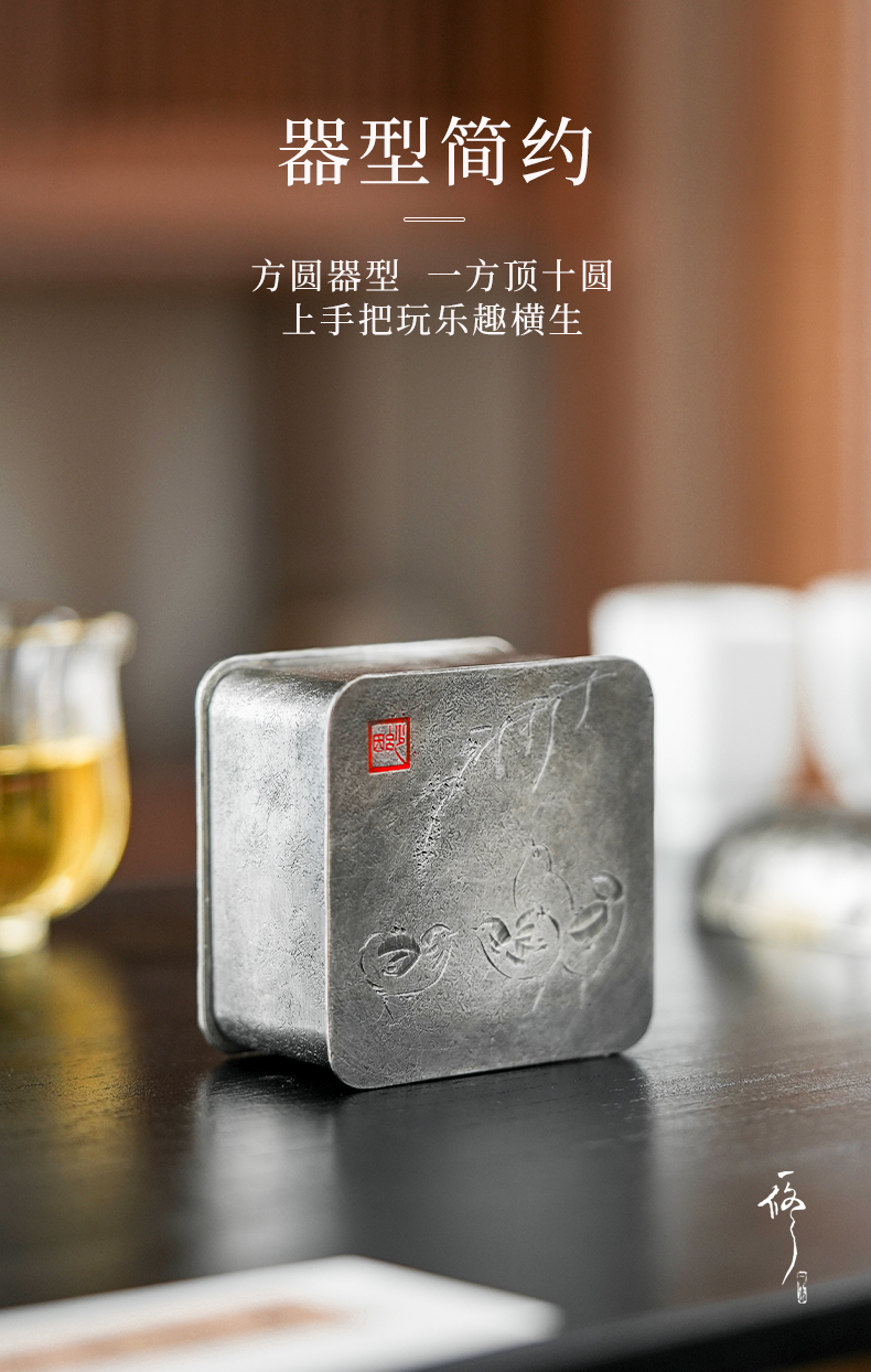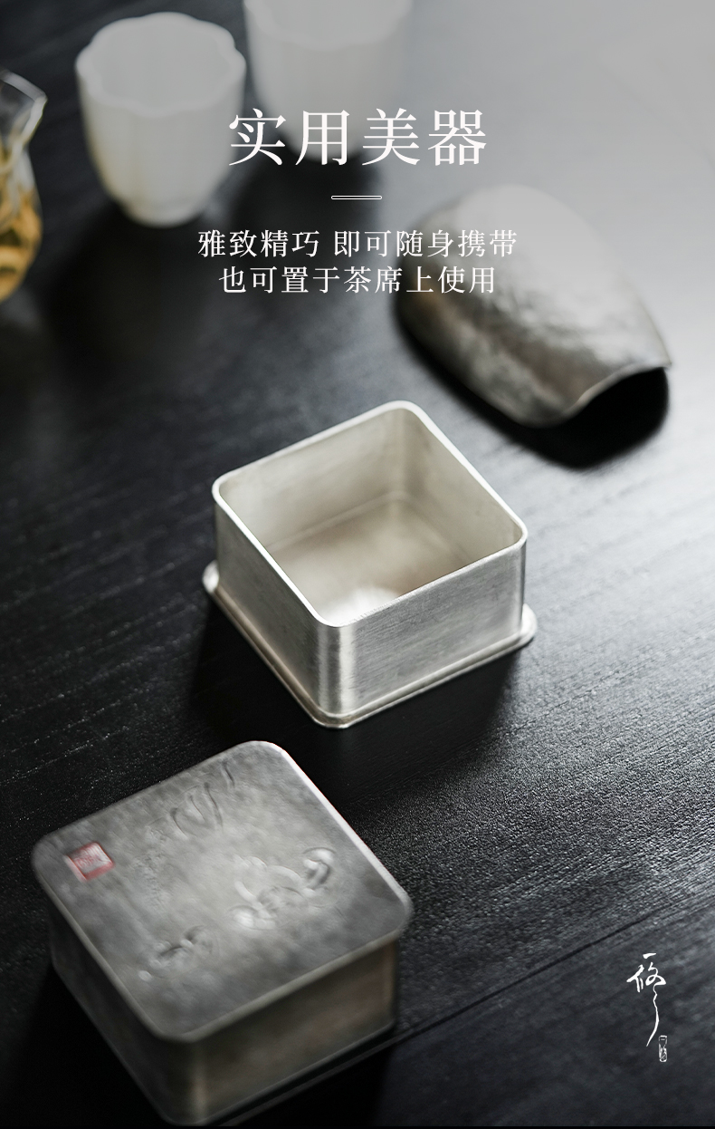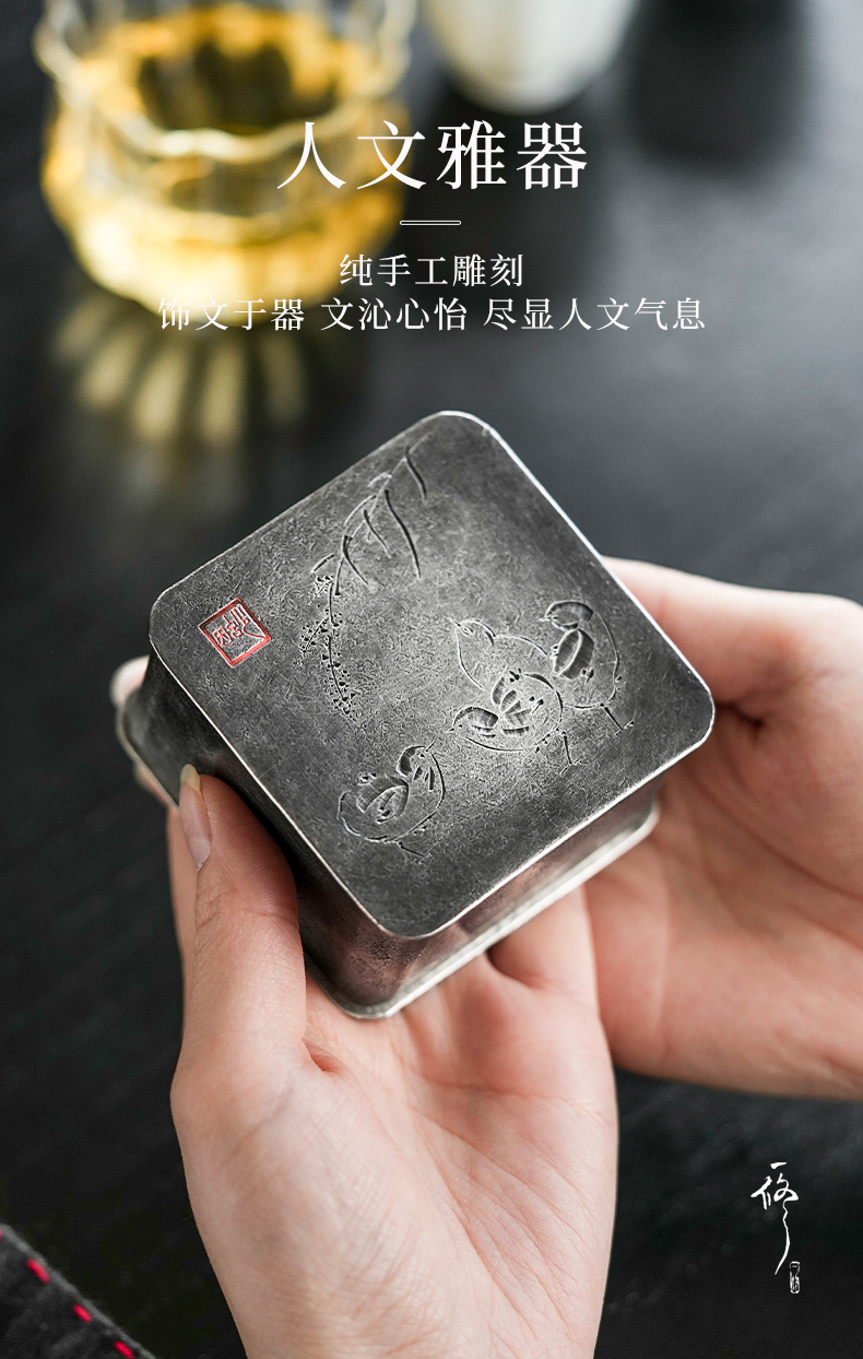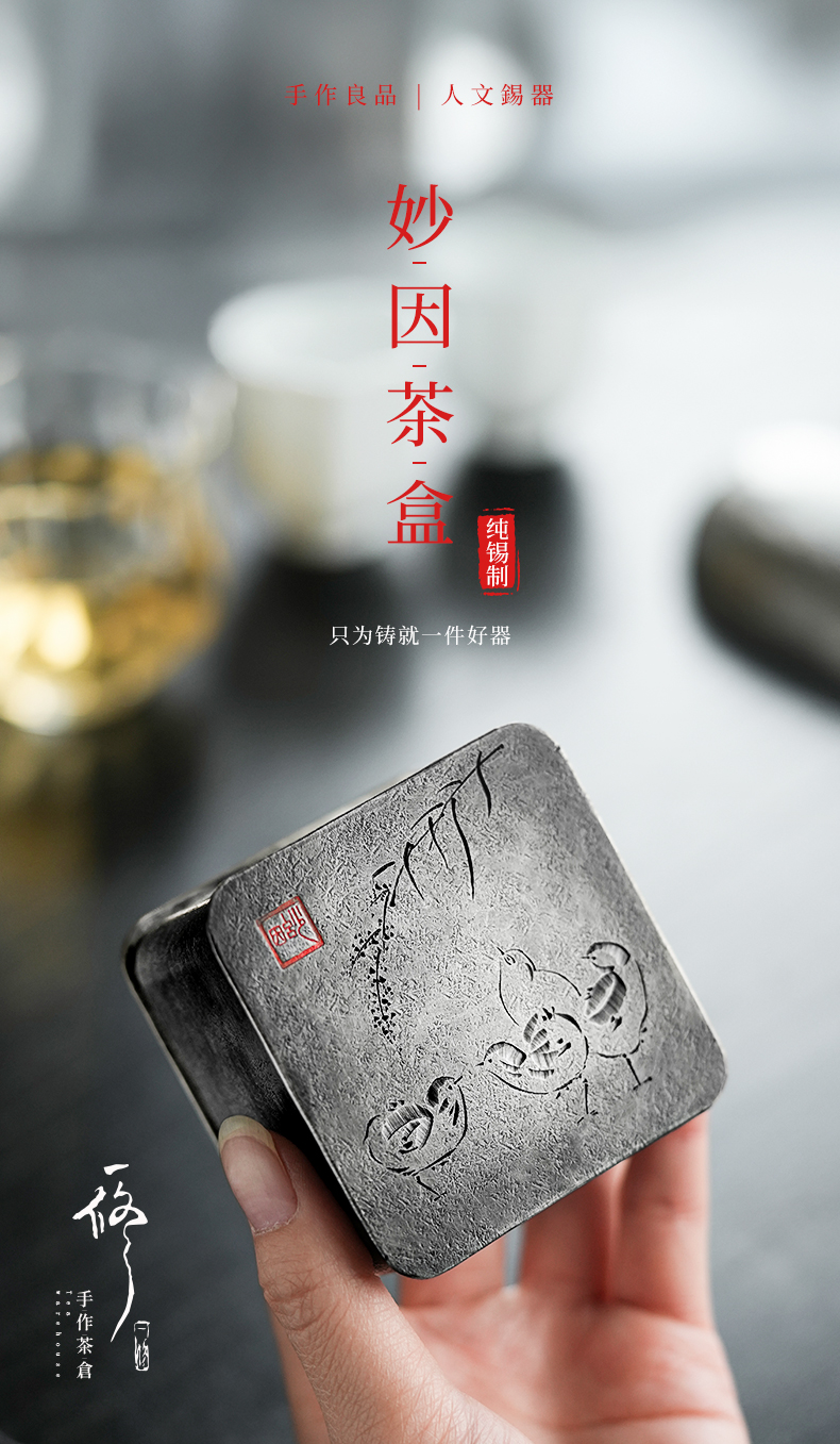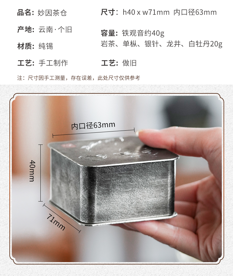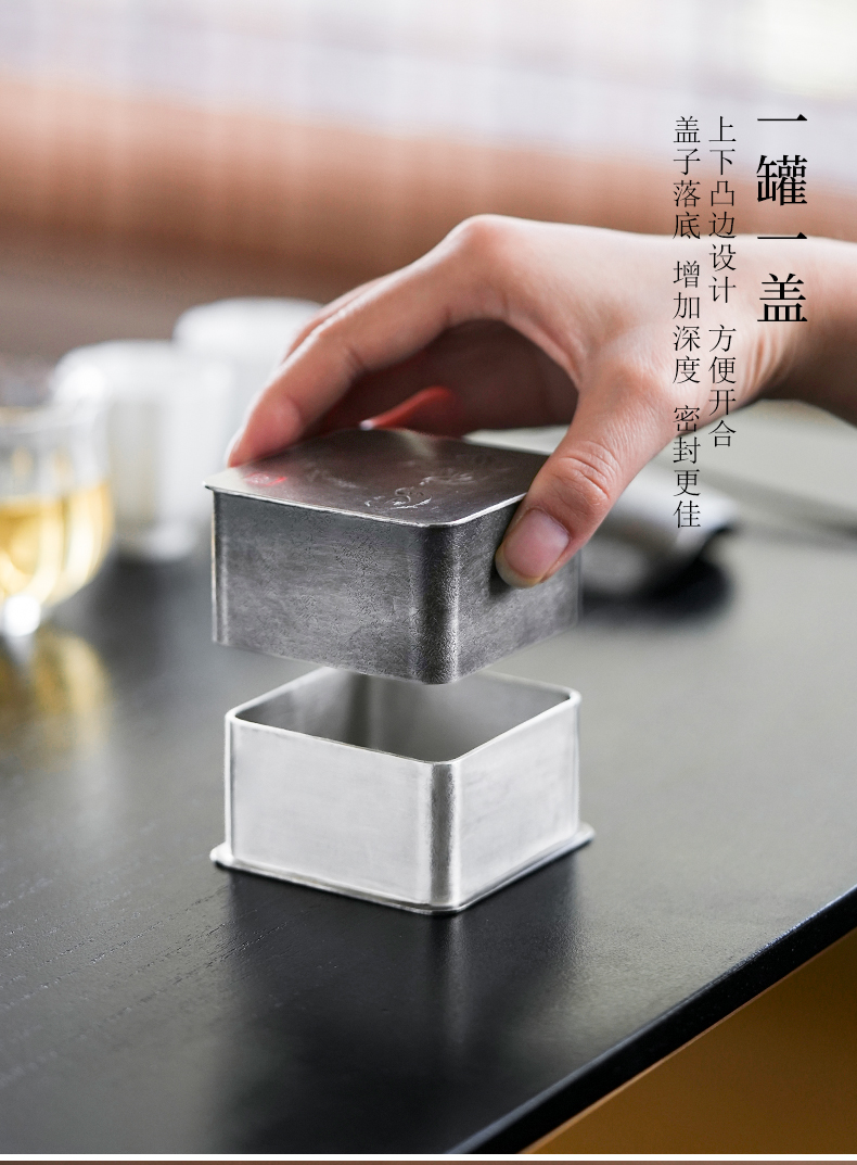 斑锡龙妙因茶盒全手工锡罐妙因茶盒复古小号纯锡茶叶罐密封