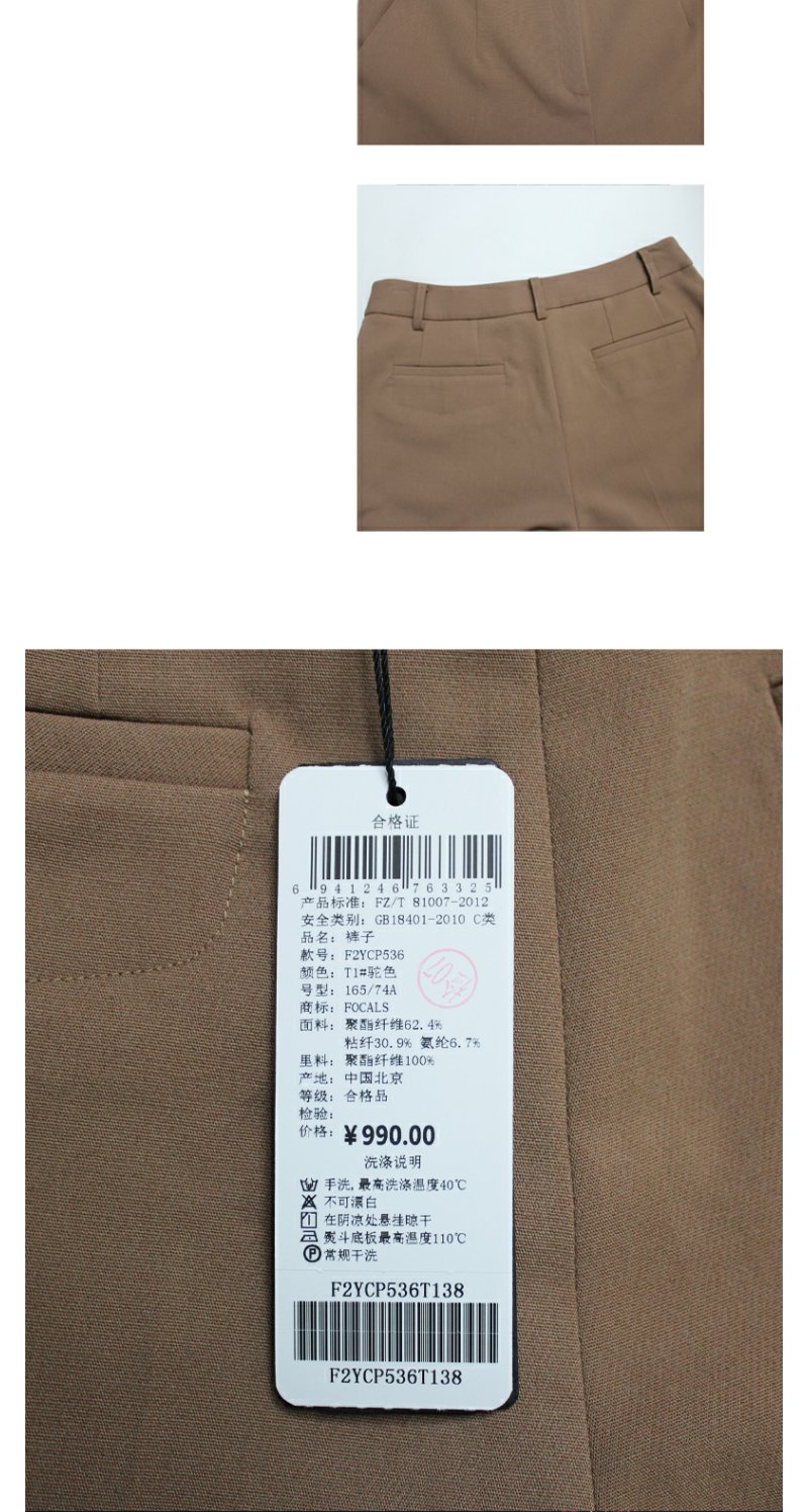 FOCALS福柯斯秋季新款通勤百搭纯色休闲直筒裤九分女裤F2YCP536T1