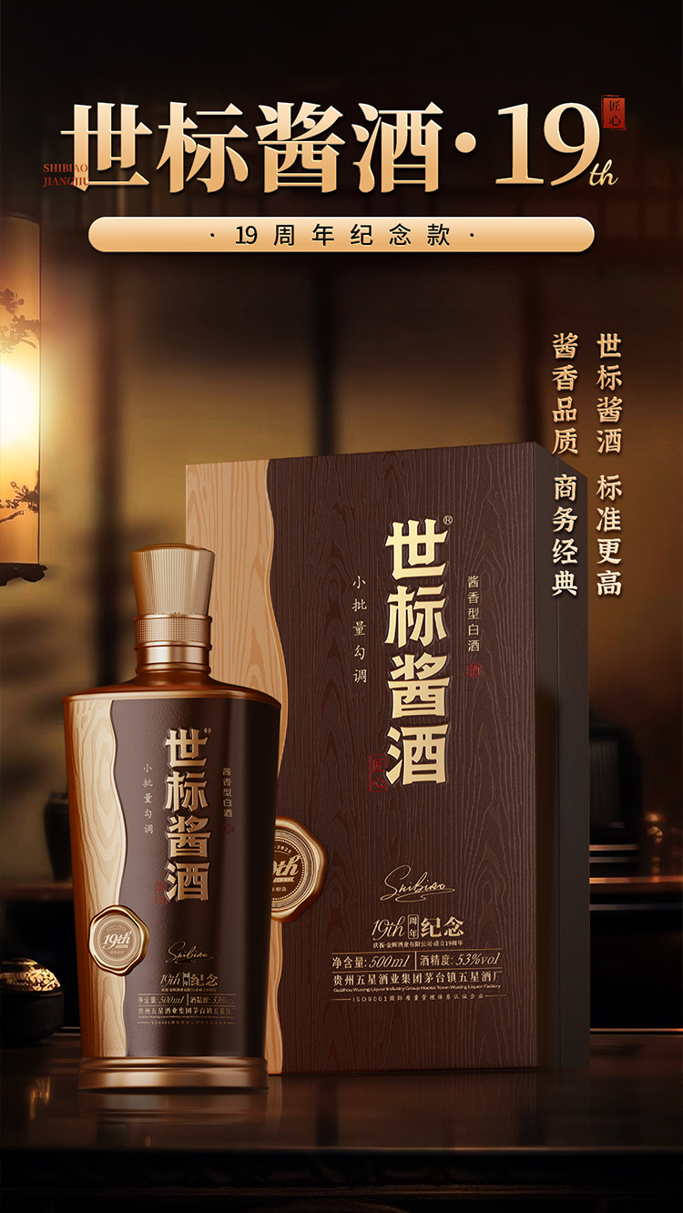 53度五星世标19周年纪念酱香型白酒1*6*500ML