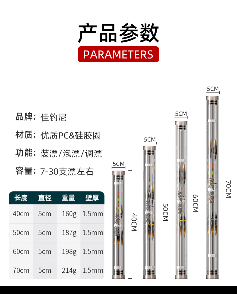 佳钓尼漂筒大容量加厚加长浮漂桶鱼漂盒透明漂管浮漂收纳筒鱼漂桶