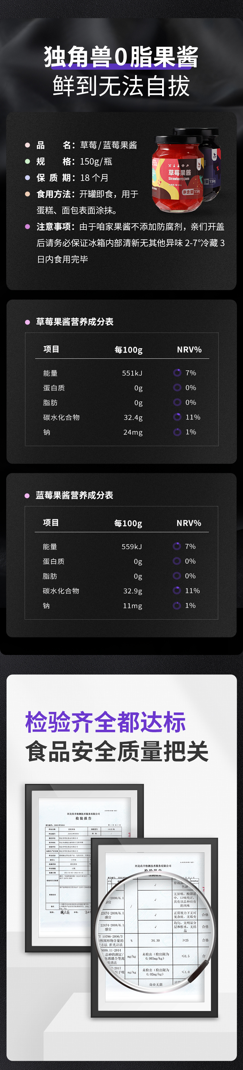 暴肌独角兽果酱组合(草莓果酱150g*1瓶+蓝莓果酱 150g*1瓶)生产日期: 1月