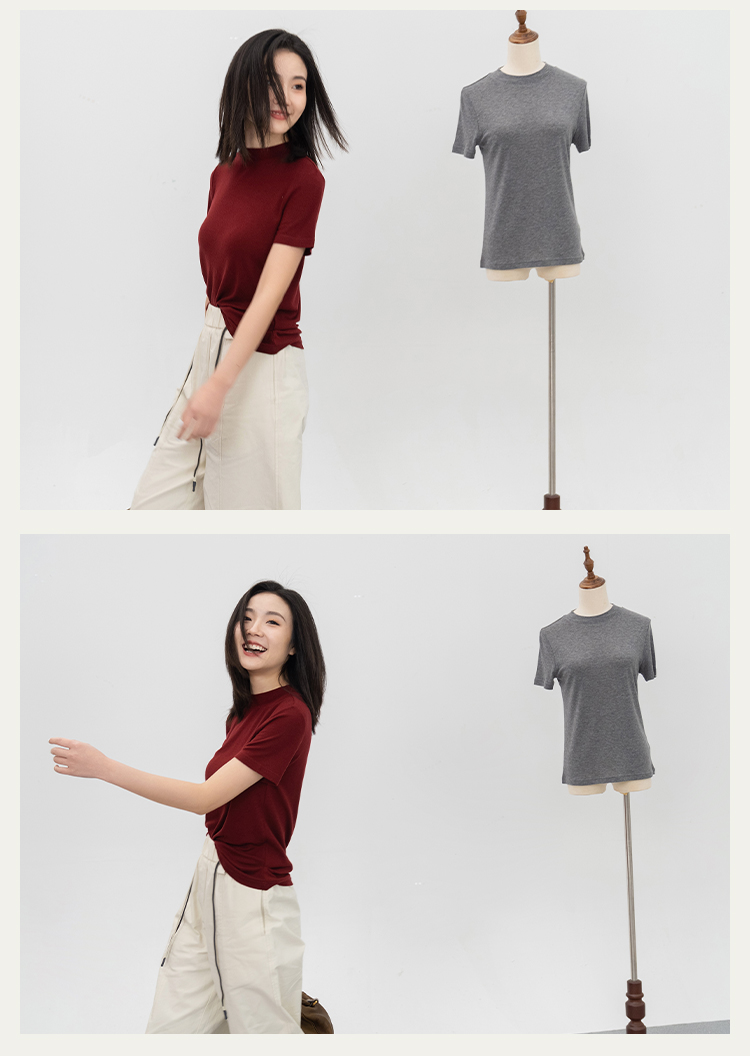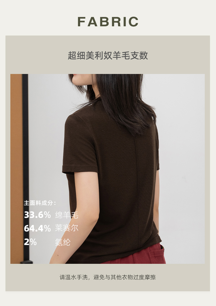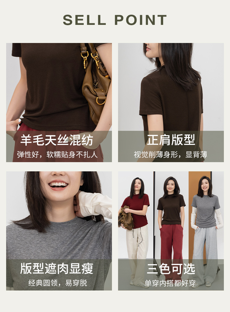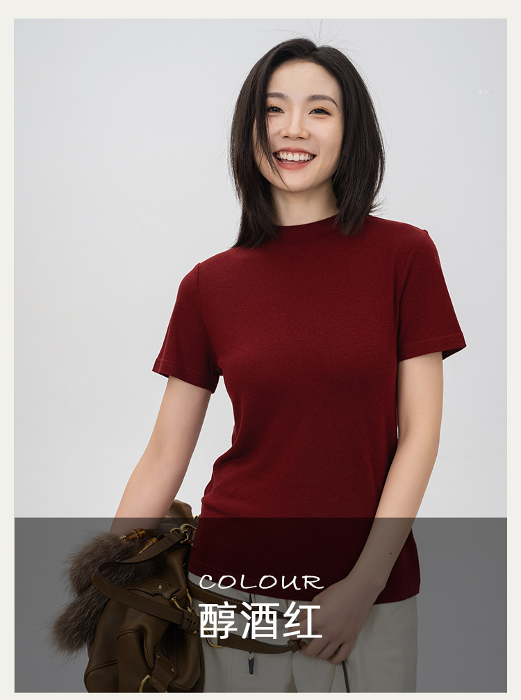 【天丝+超细美利奴羊毛】半高领气质羊毛软糯T 针织短袖 遮肉显瘦