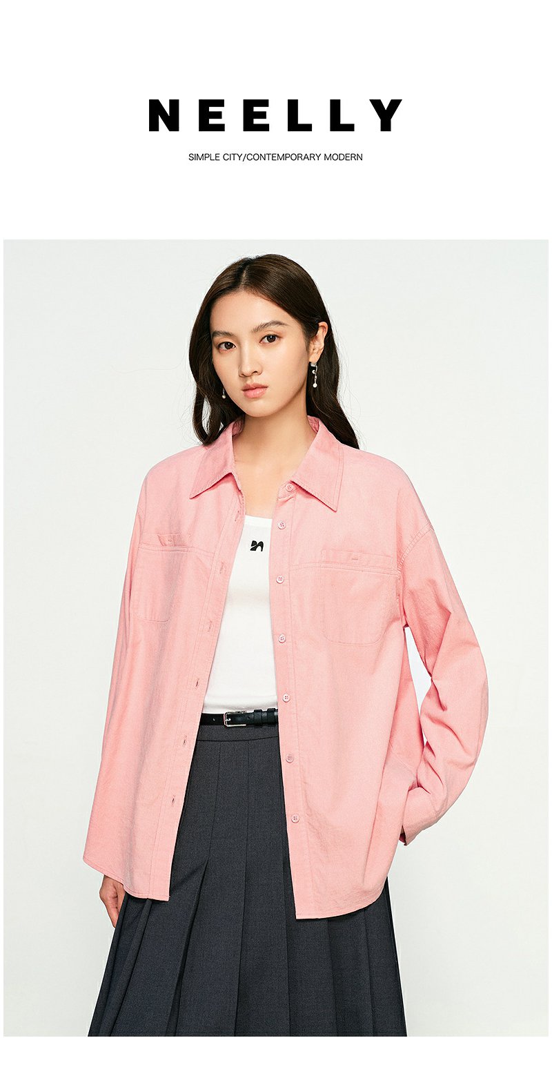 NEELLY纳俪商场同款秋季新款百搭减龄显白翻领衬衫女舒适简约衬衣N25094B04625
