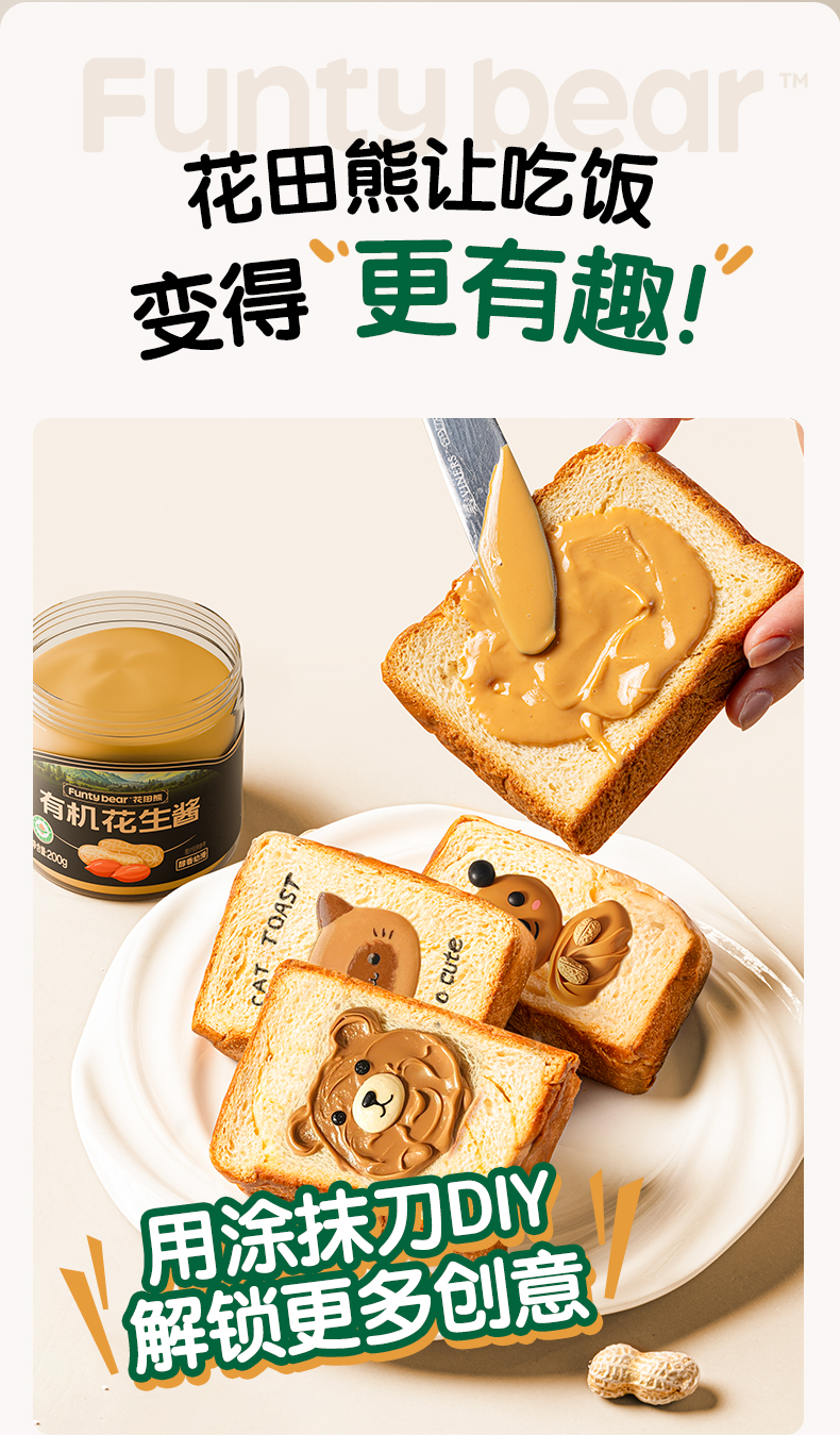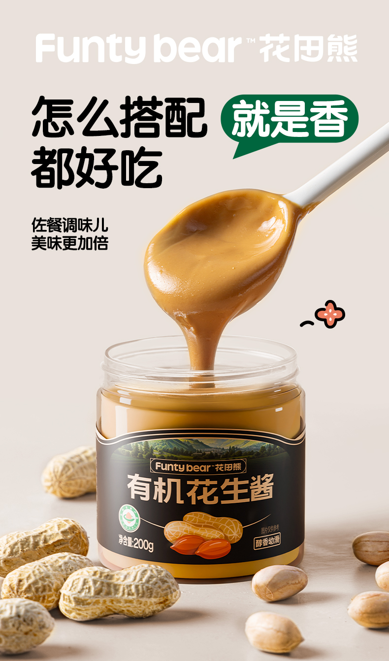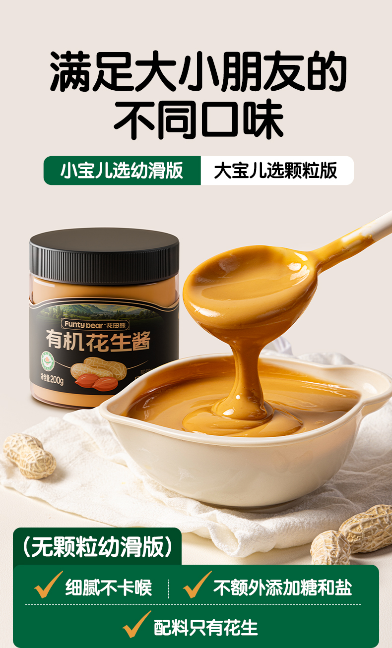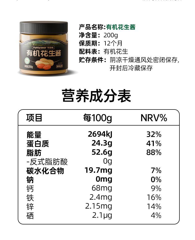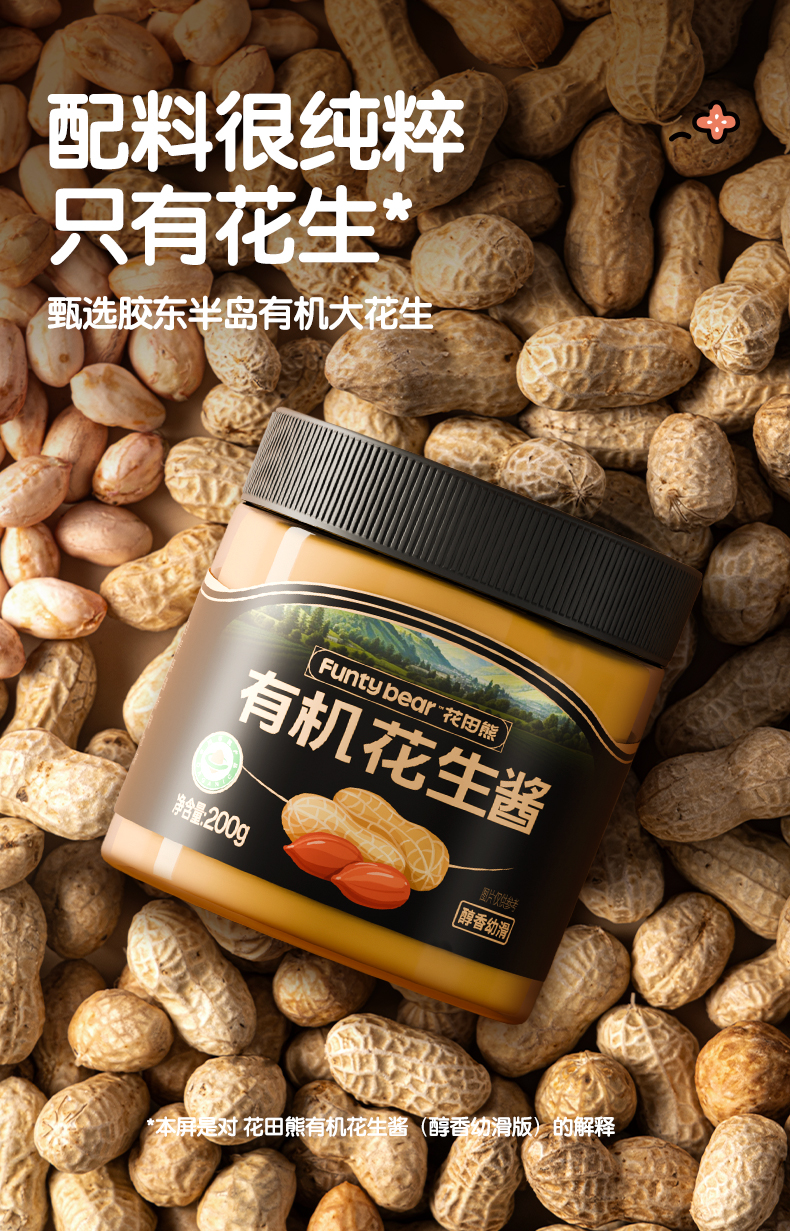 花田熊有机花生酱-幼滑版(200g/罐)生产日期: 1月