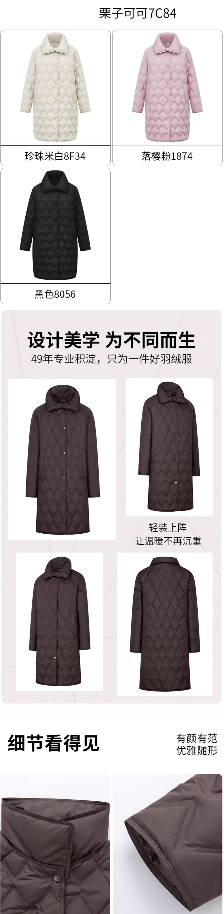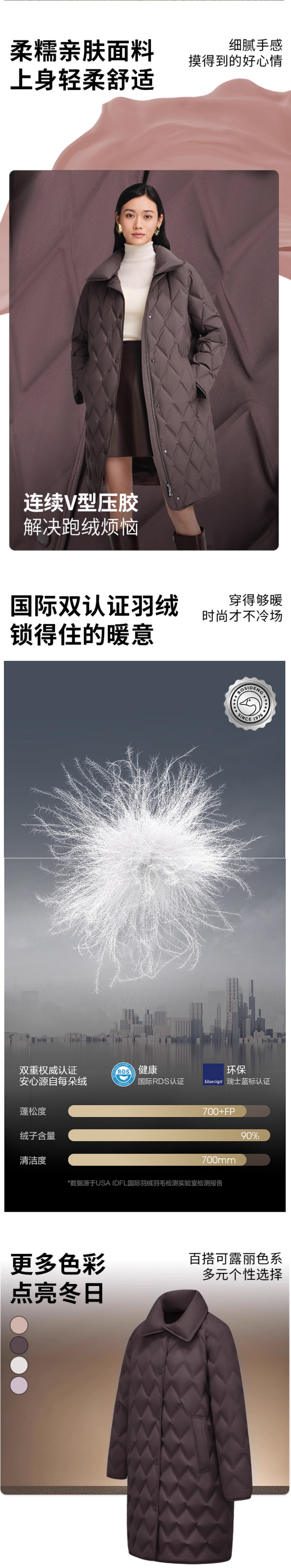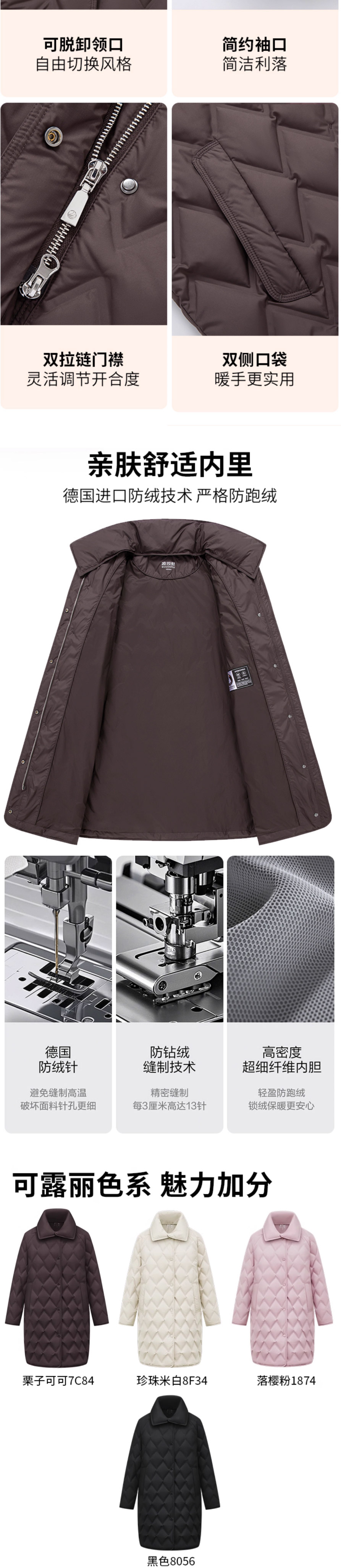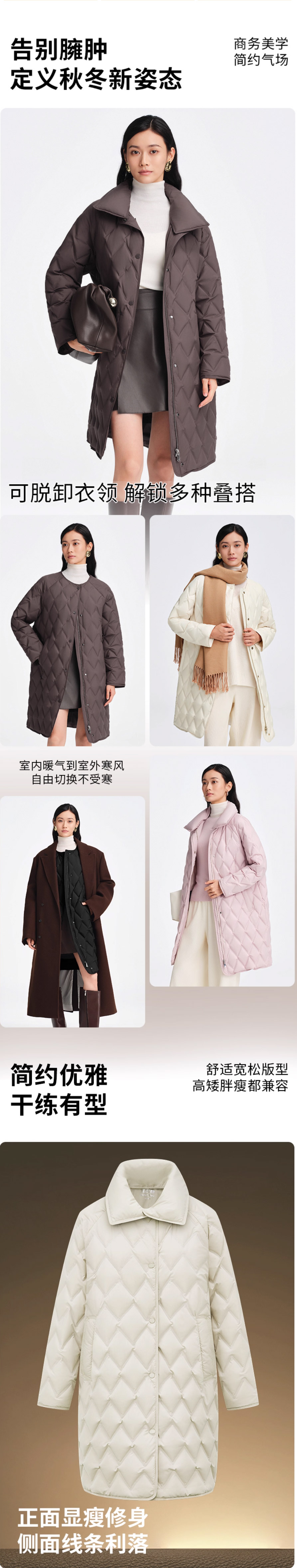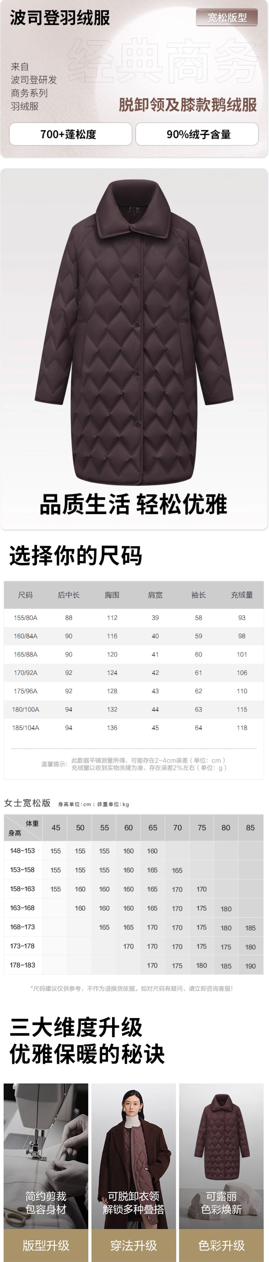 波司登2025新款女士商务气质鹅绒宽松中长款翻领羽绒服B250134162