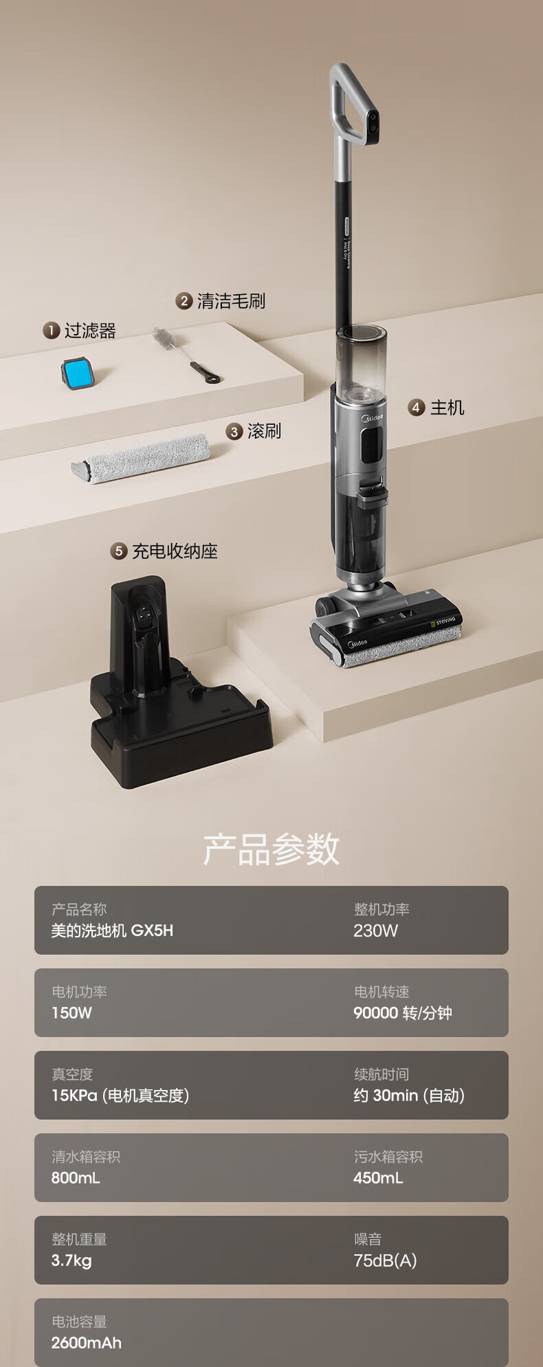 美的(Midea)洗地机_GX5H家用防缠绕