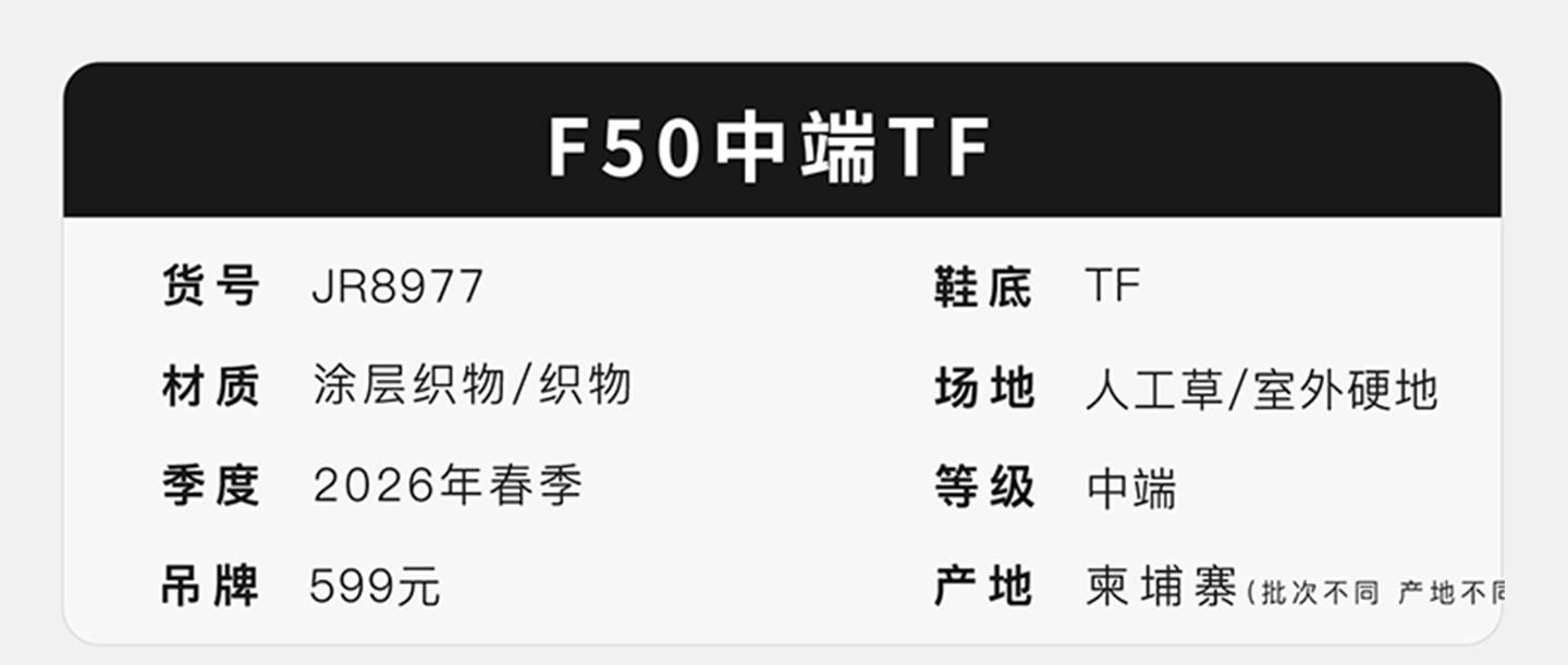 小李子ADIDAS阿迪达斯 F50 中端TF碎钉成人足球鞋男JR8977