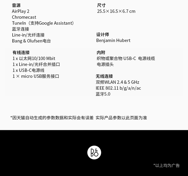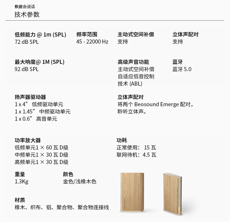 B&O Beosound Emerge 纤薄家用蓝牙书本音响 丹麦bo大功率全频段扬声器 室内桌面音响音箱