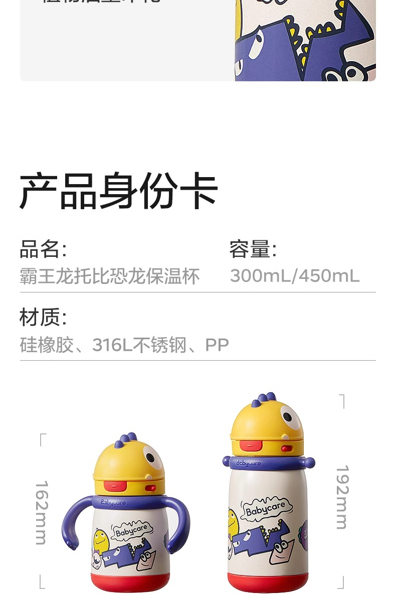 450ml-塔尔曼橙Babycare霸王龙托比保温杯