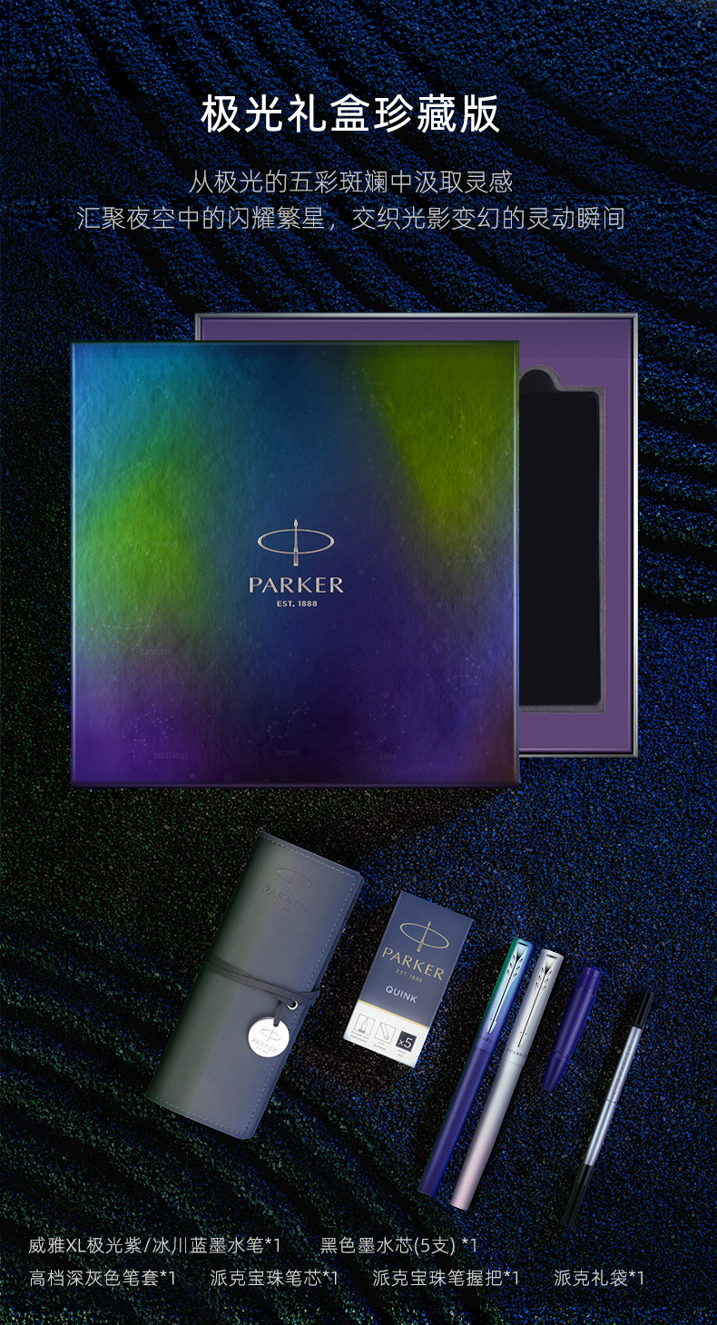 PARKER派克钢笔威雅XL欧若拉特别款礼盒墨水笔极光紫一笔两用学生练字商务生日送礼男女士高档礼物