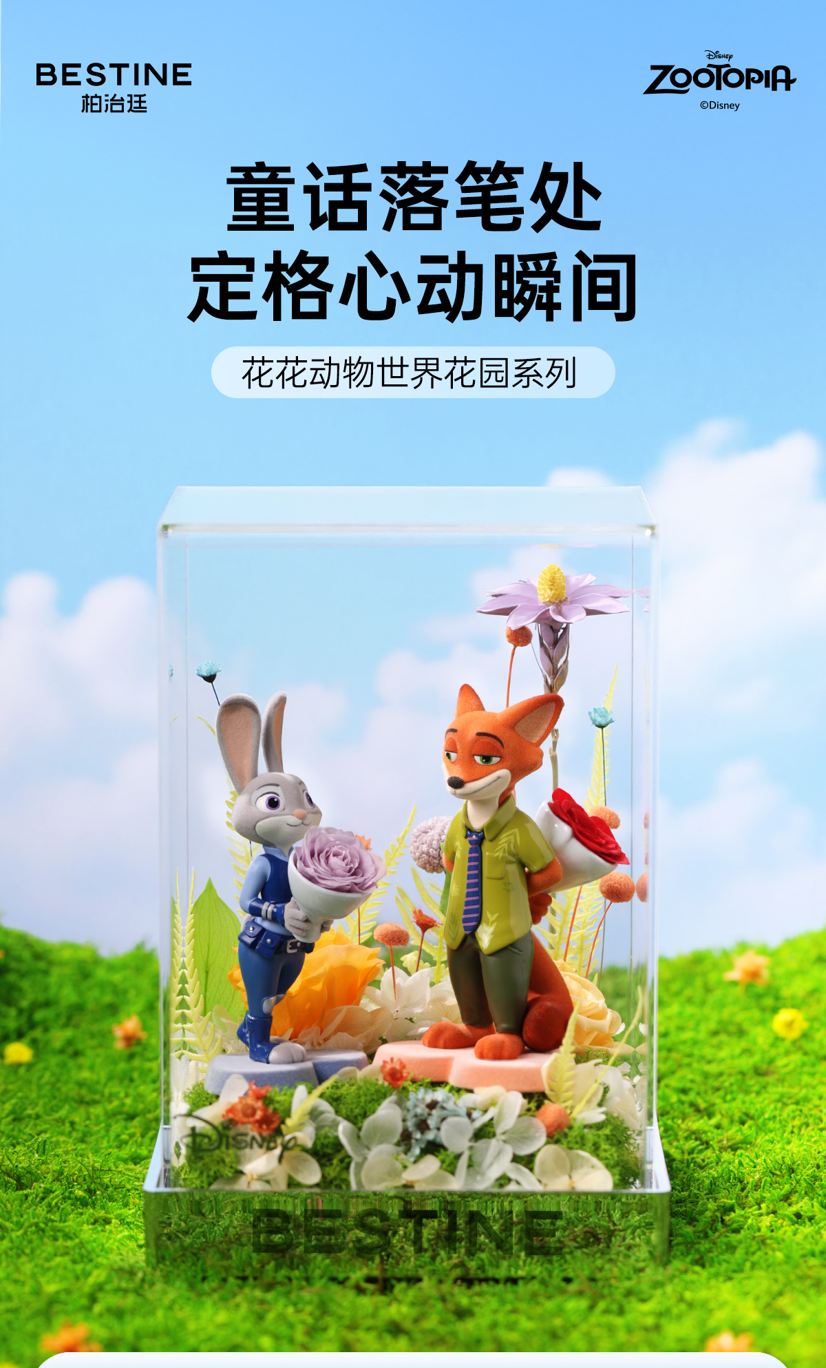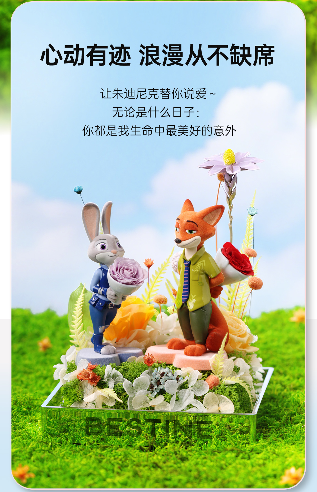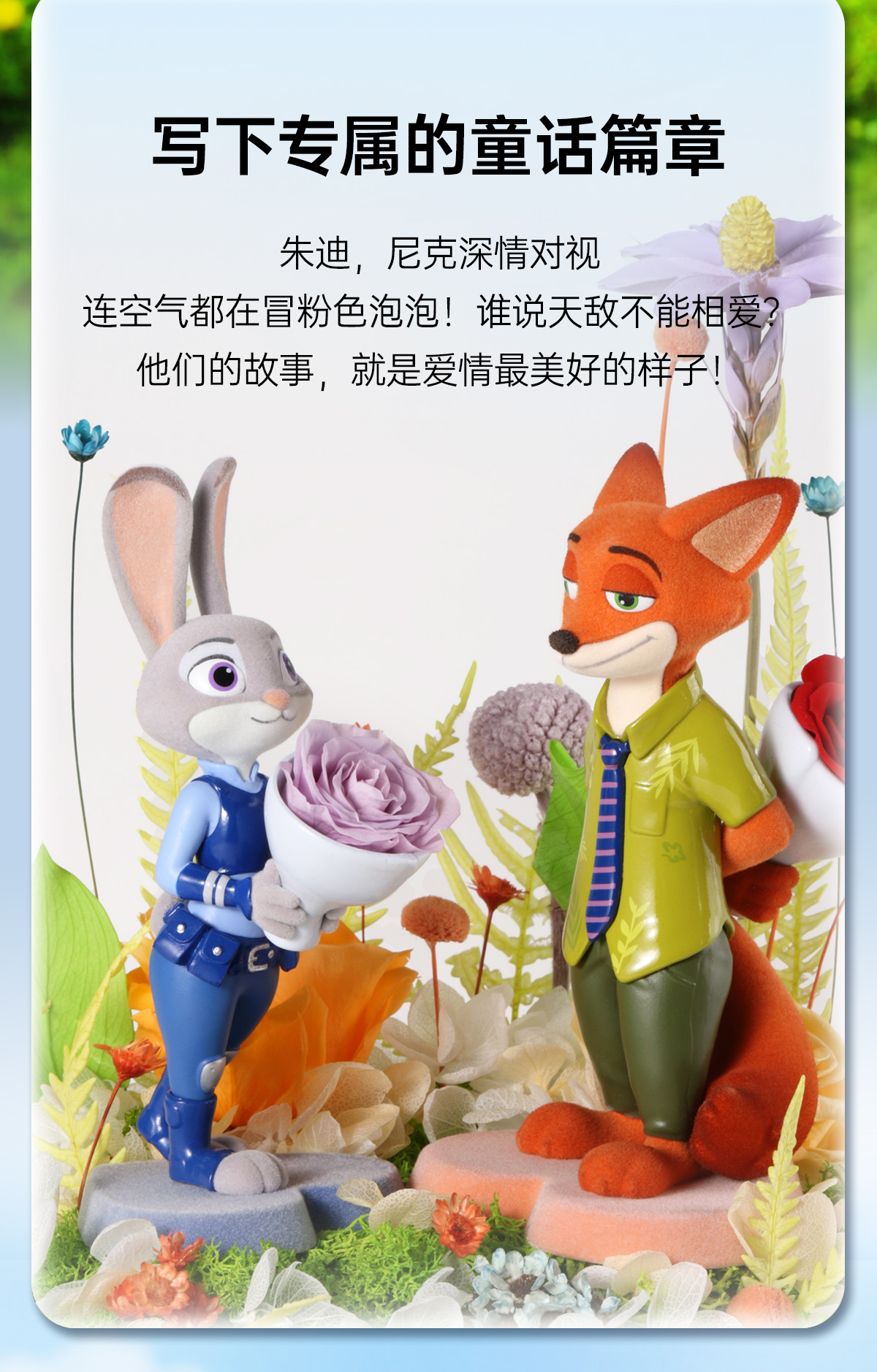 VBEINGS花语 迪士尼疯狂动物城朱迪尼克永生花礼盒摆件生日礼物