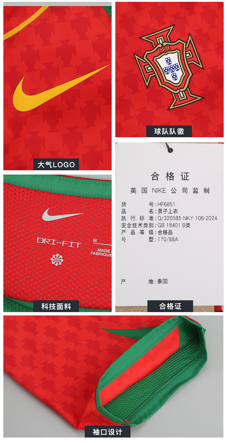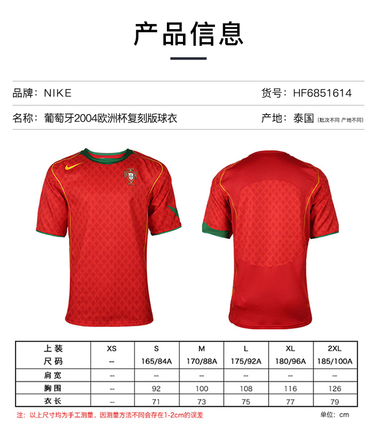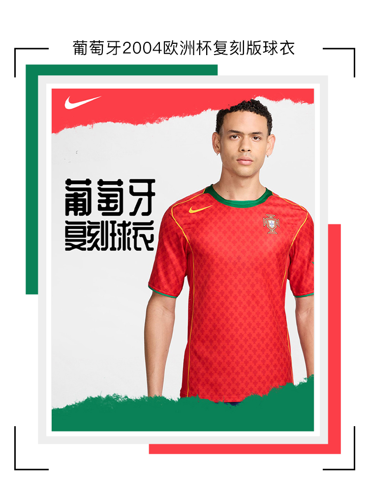 小李子NIKE耐克2004欧洲杯葡萄牙复刻版球衣短袖成人男HF6851-614