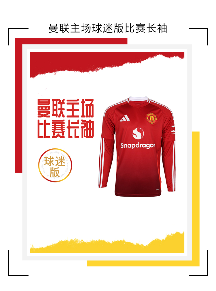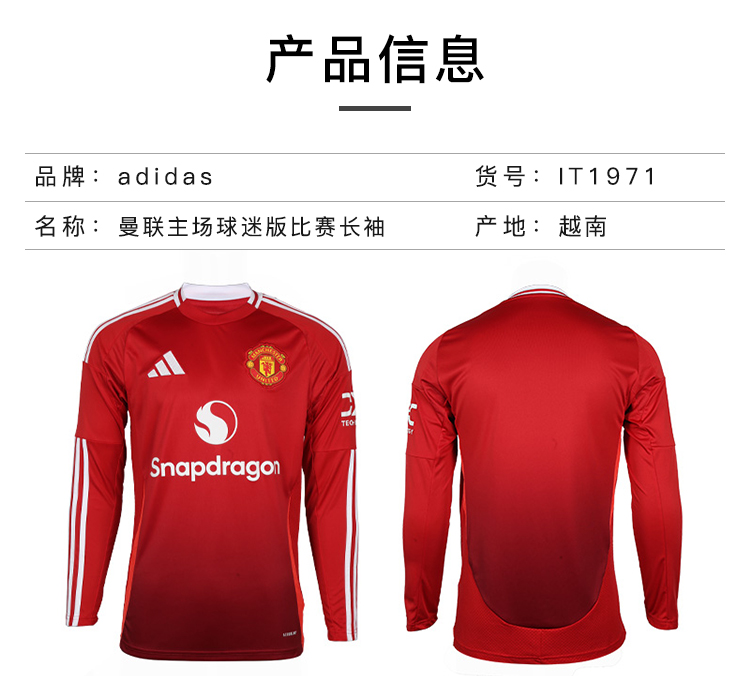 小李子ADIDAS阿迪达斯24/25赛季曼联主场球迷版球衣长袖成人男IT1971
