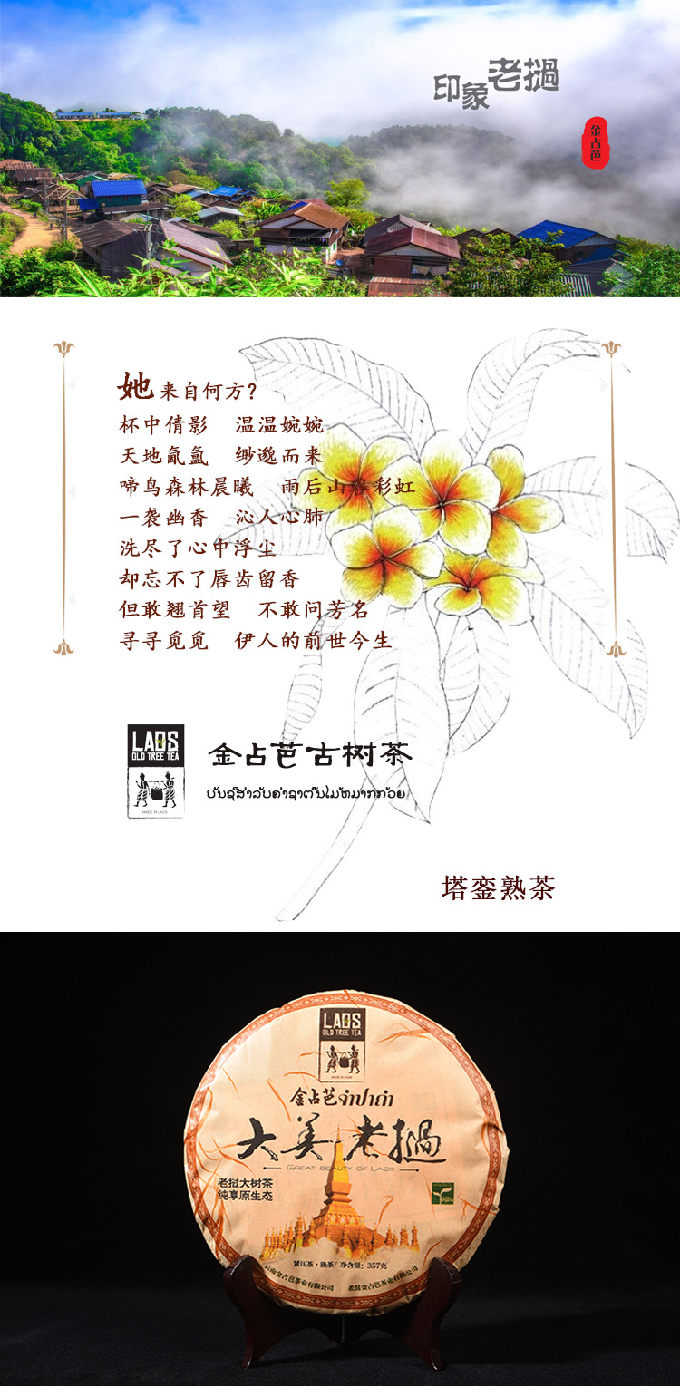 【品质礼】法国月亮酒庄银月干白葡萄酒 750ml +花故事老挝普洱金占芭熟茶357g礼盒