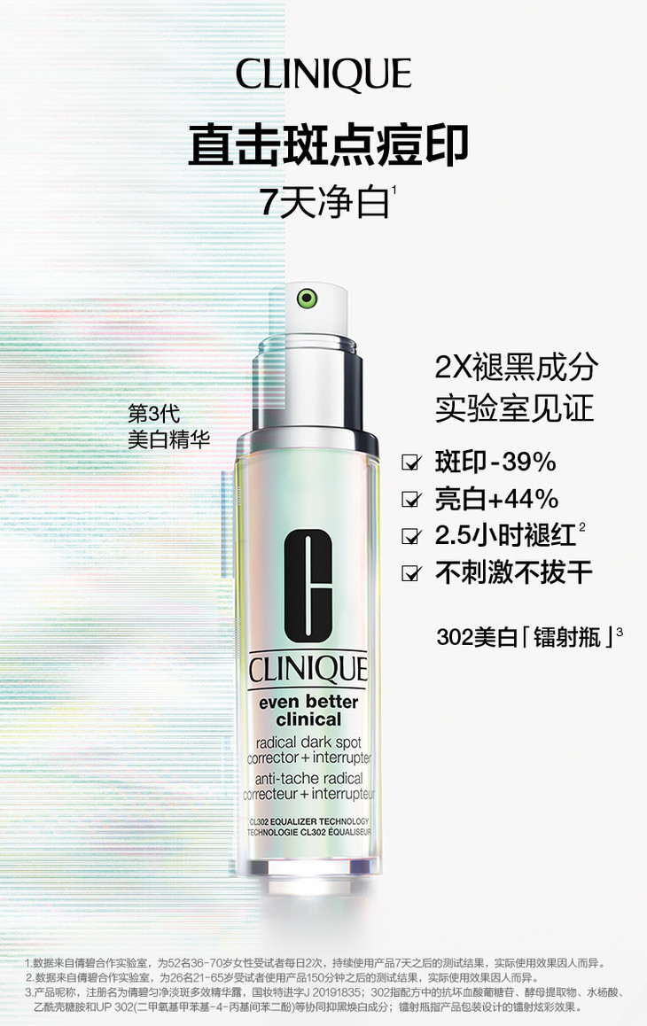 倩碧302光子镭射瓶 美白淡斑抗糖淡痘印提亮敏感肌50ml/100ml QM