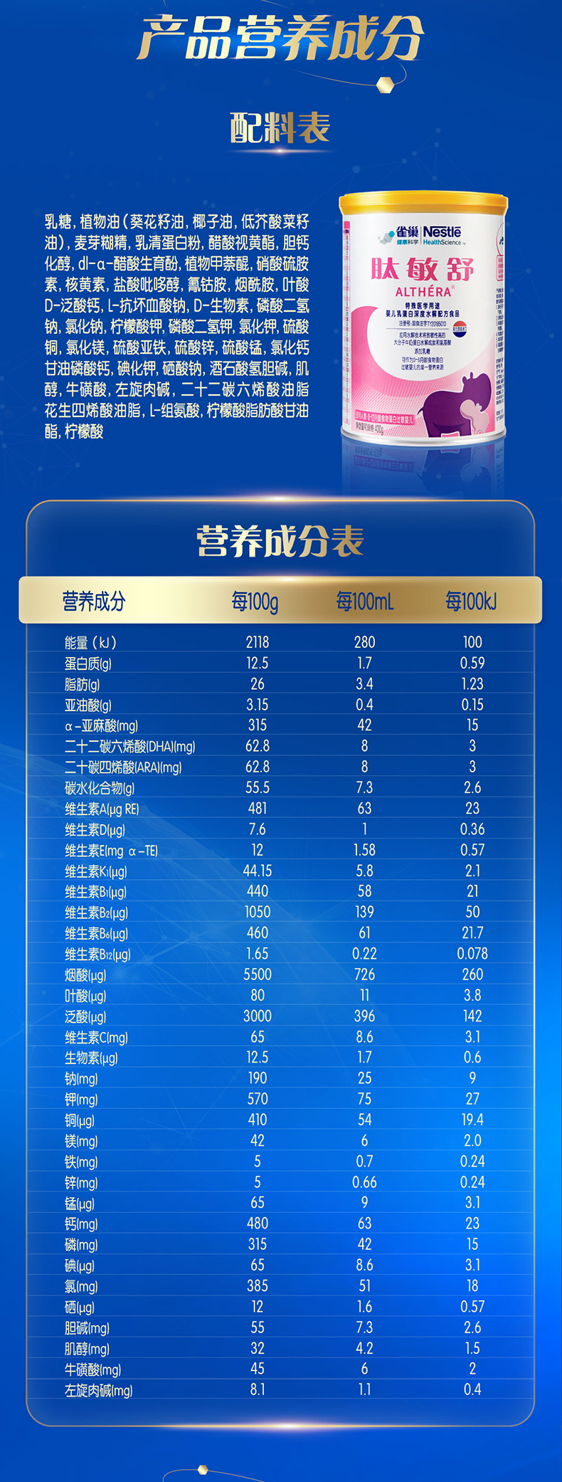 雀巢肽敏舒深度水解配方奶粉/含乳糖/婴幼儿过敏配方奶粉 400g