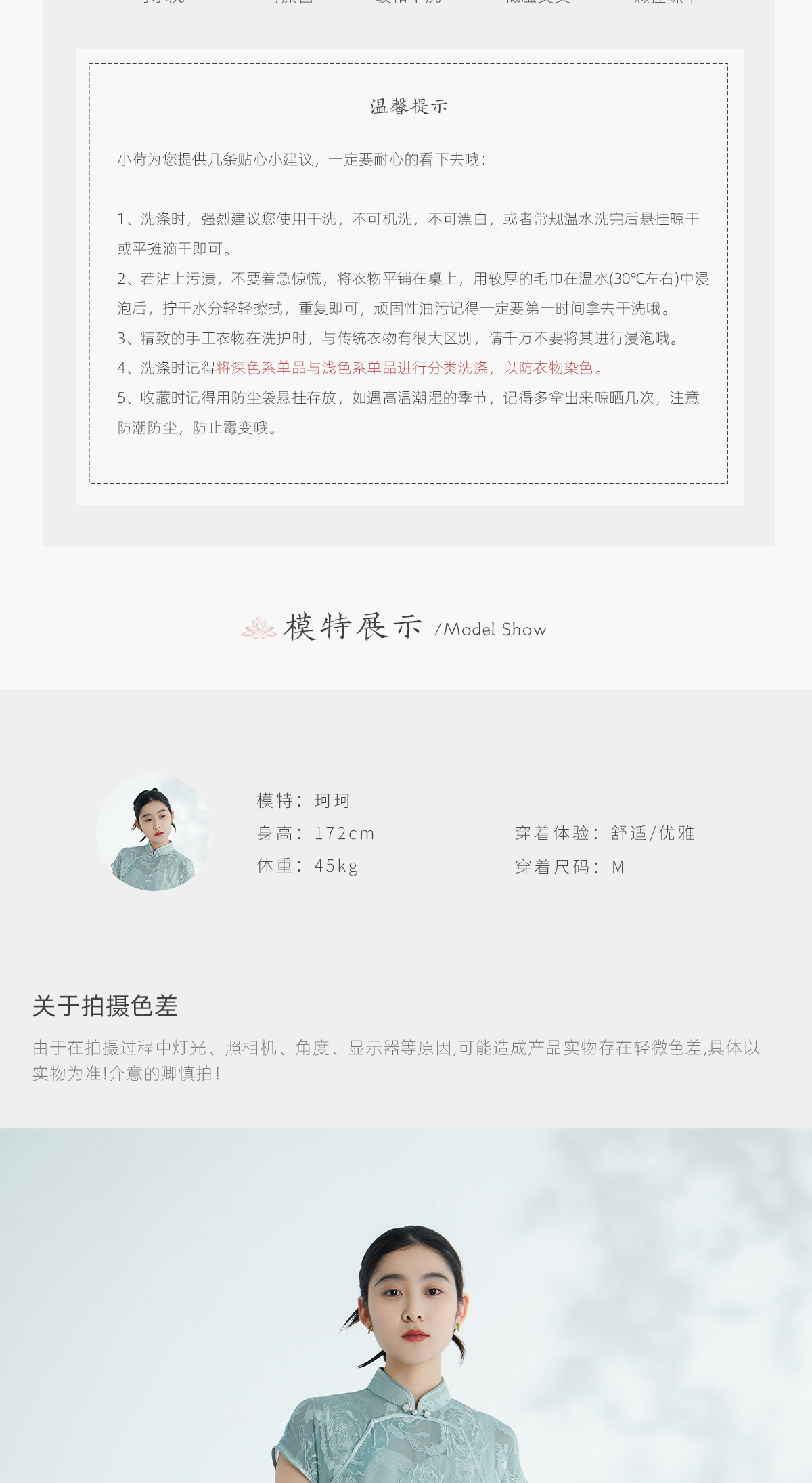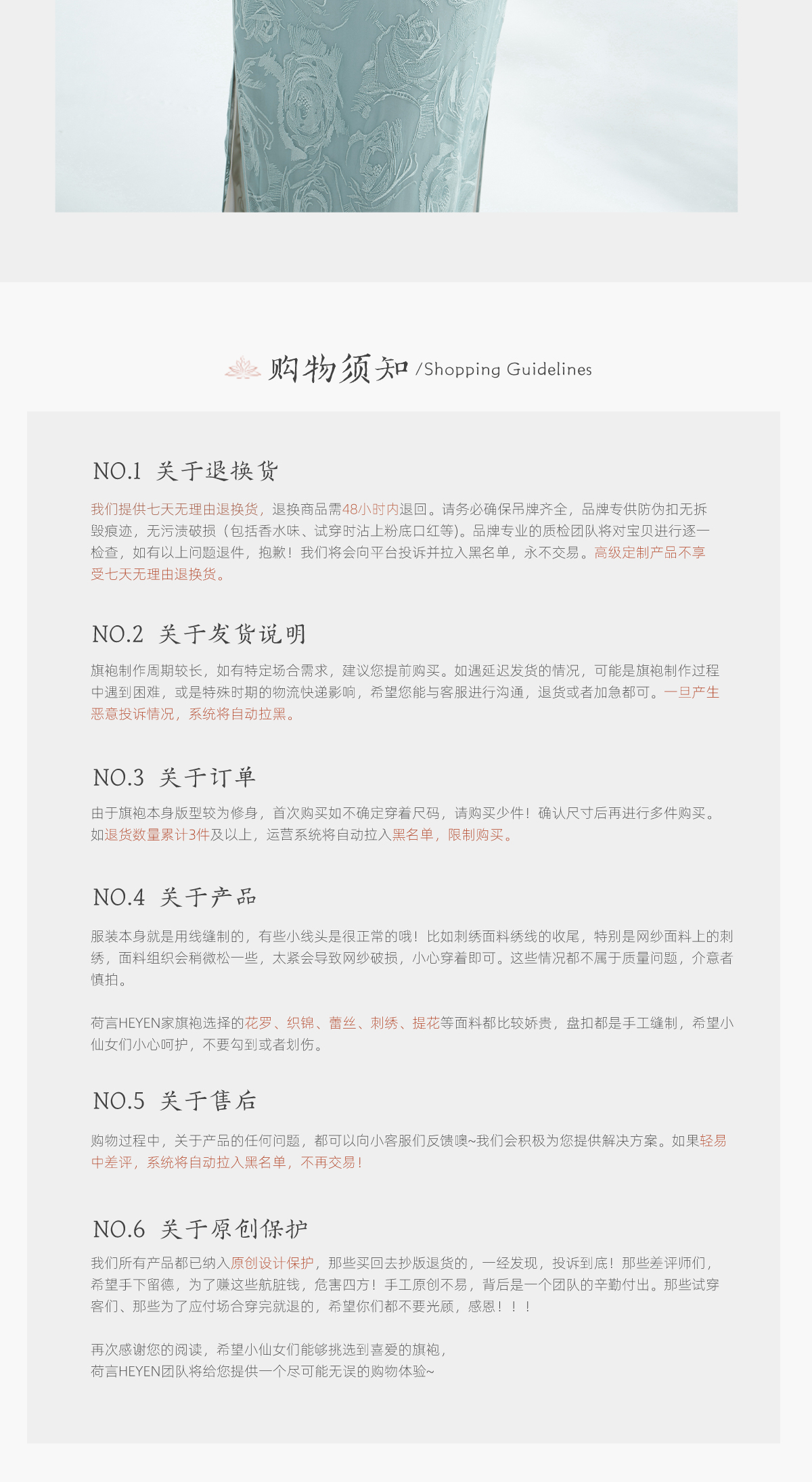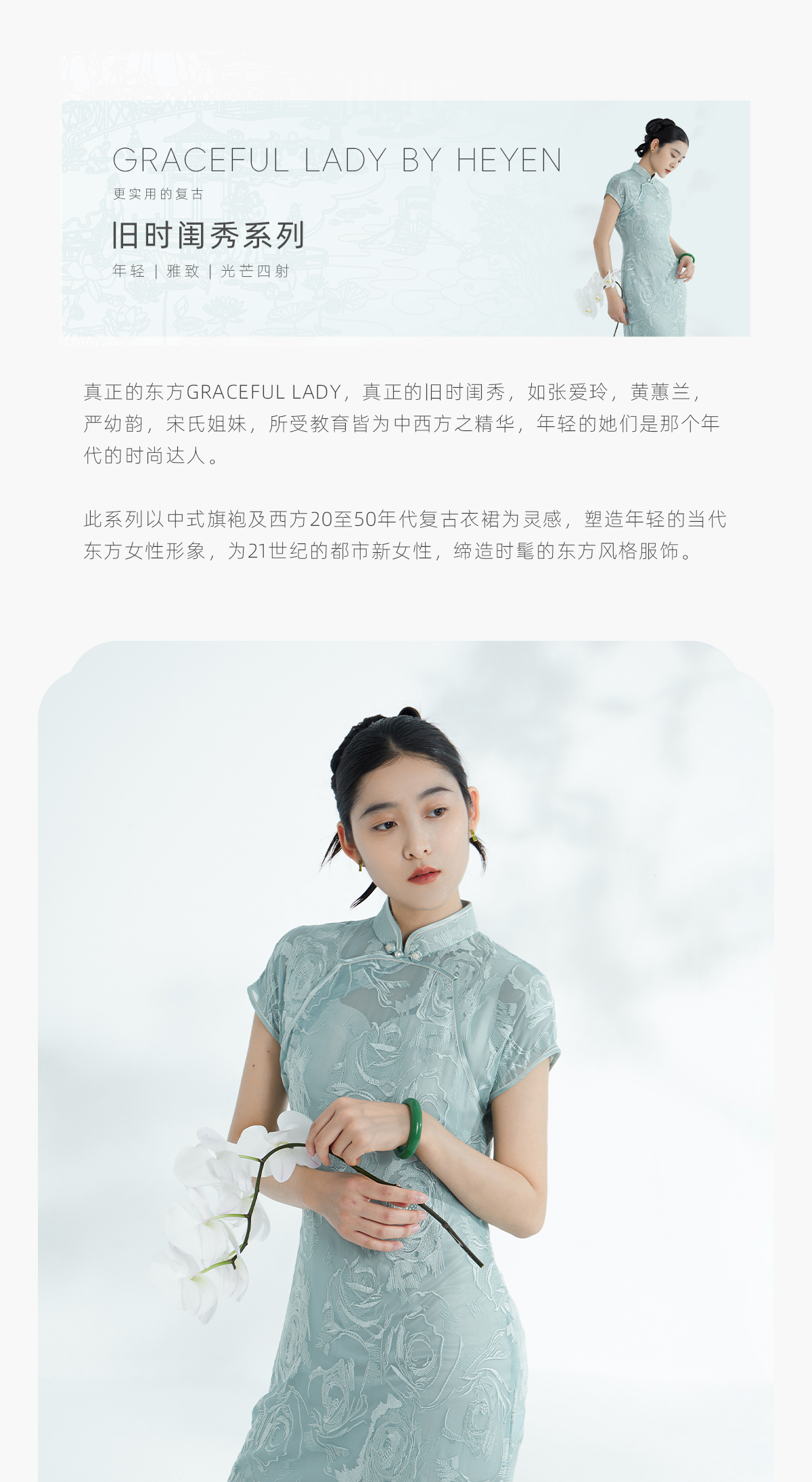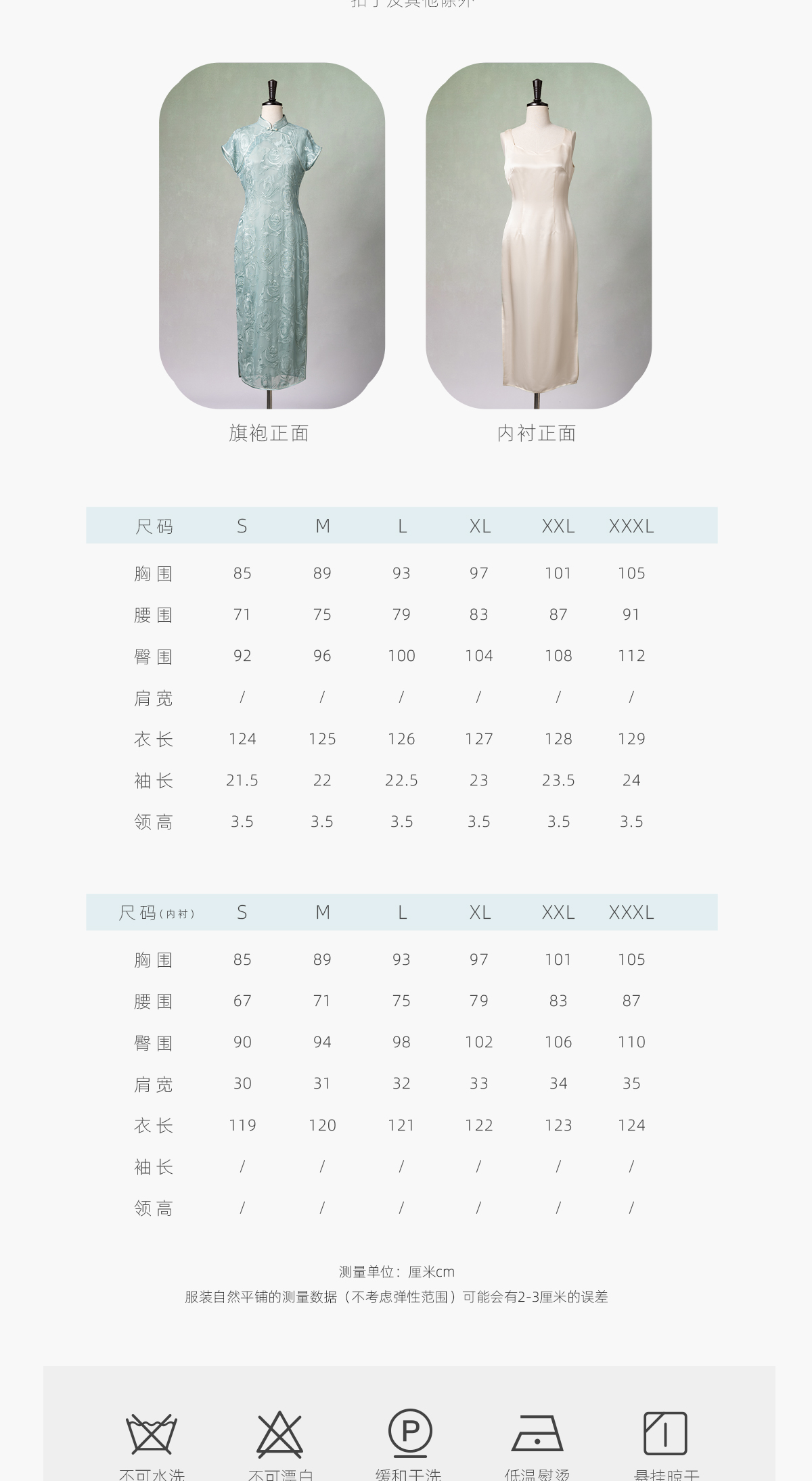 荷言GL 清扬 水蓝色玫瑰刺绣真丝乔其旗袍两件套