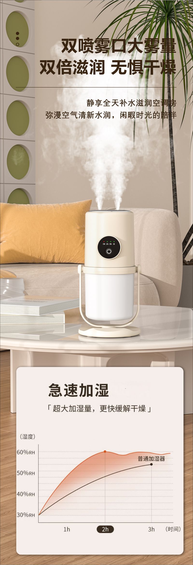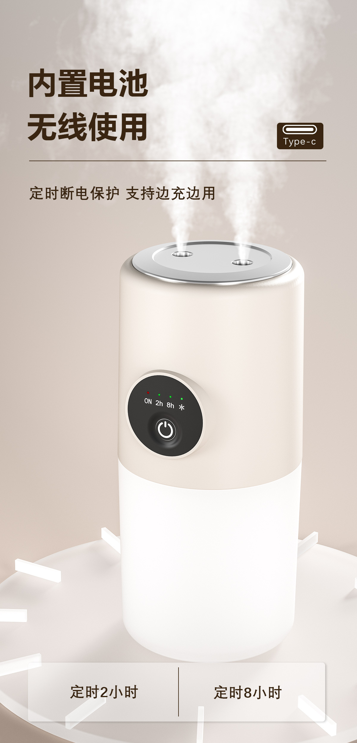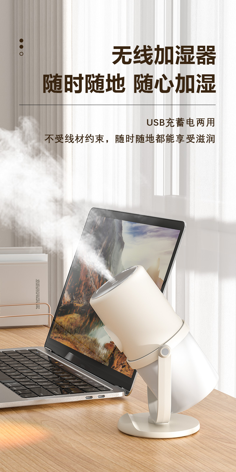 桌面双喷加湿器办公卧室便携迷你空气净化器夜灯大雾量补水加湿器