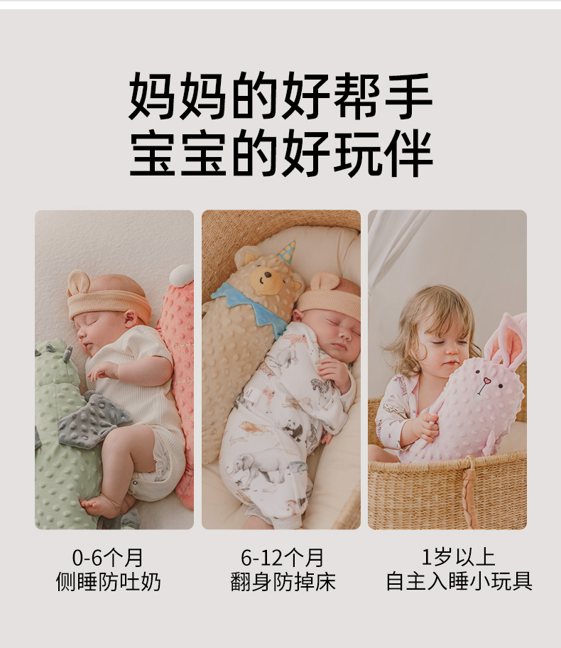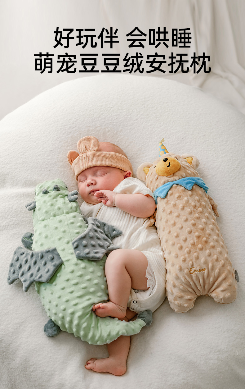 【宝宝安睡】嫚熙儿童婴儿豆豆绒安抚枕头防摔躺睡安抚睡觉入睡神器夏(宝妈们注意啦侧边标签可撕开 防止宝宝误食!!!)