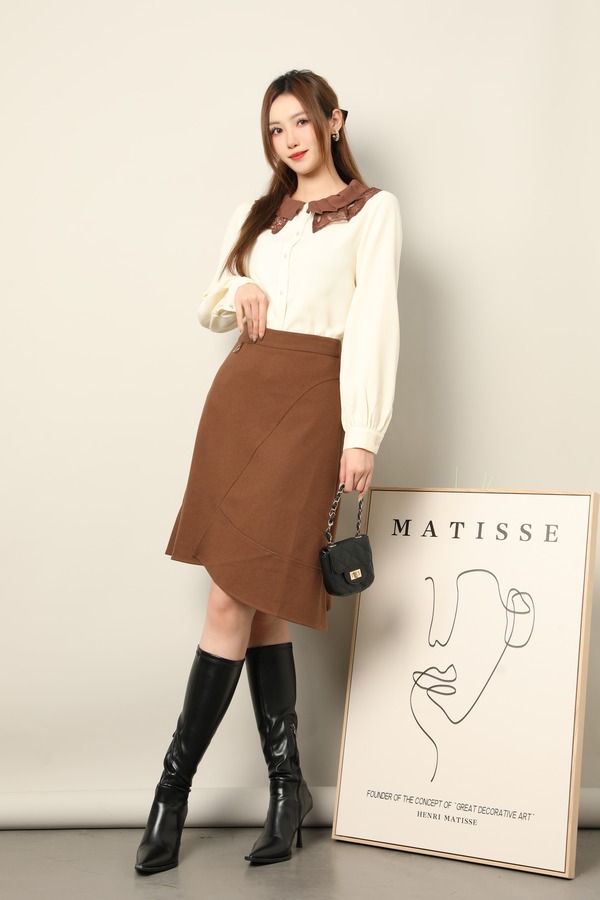 ANSUABEL 气质短款外套V领纱裙套装 14128