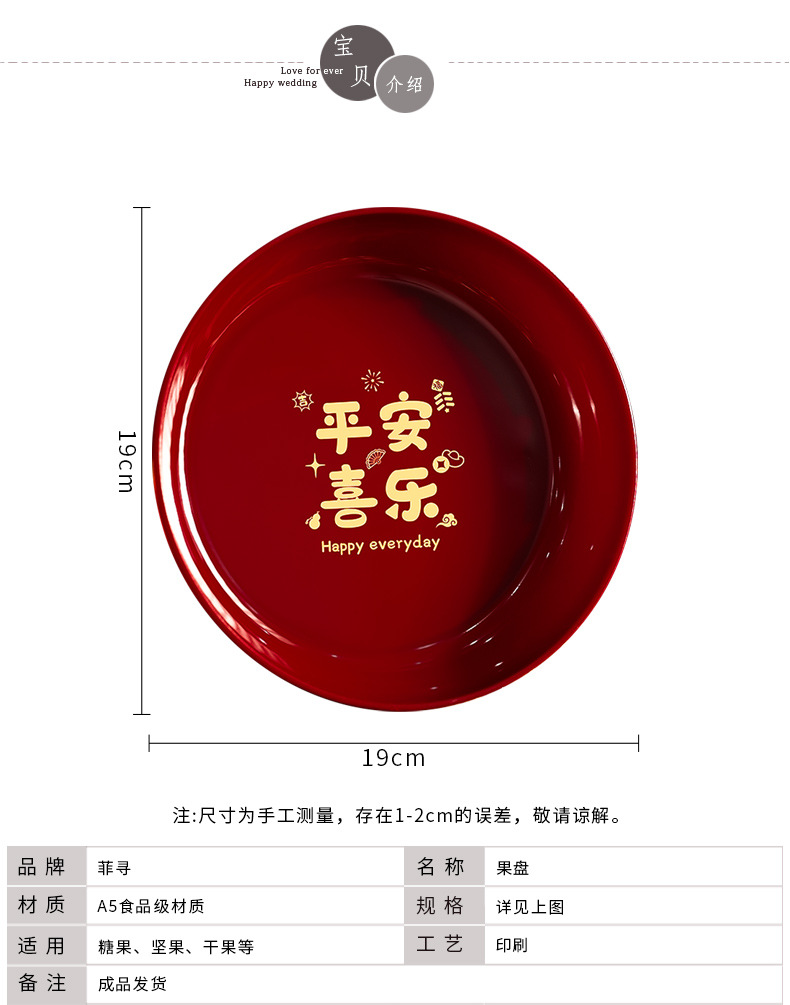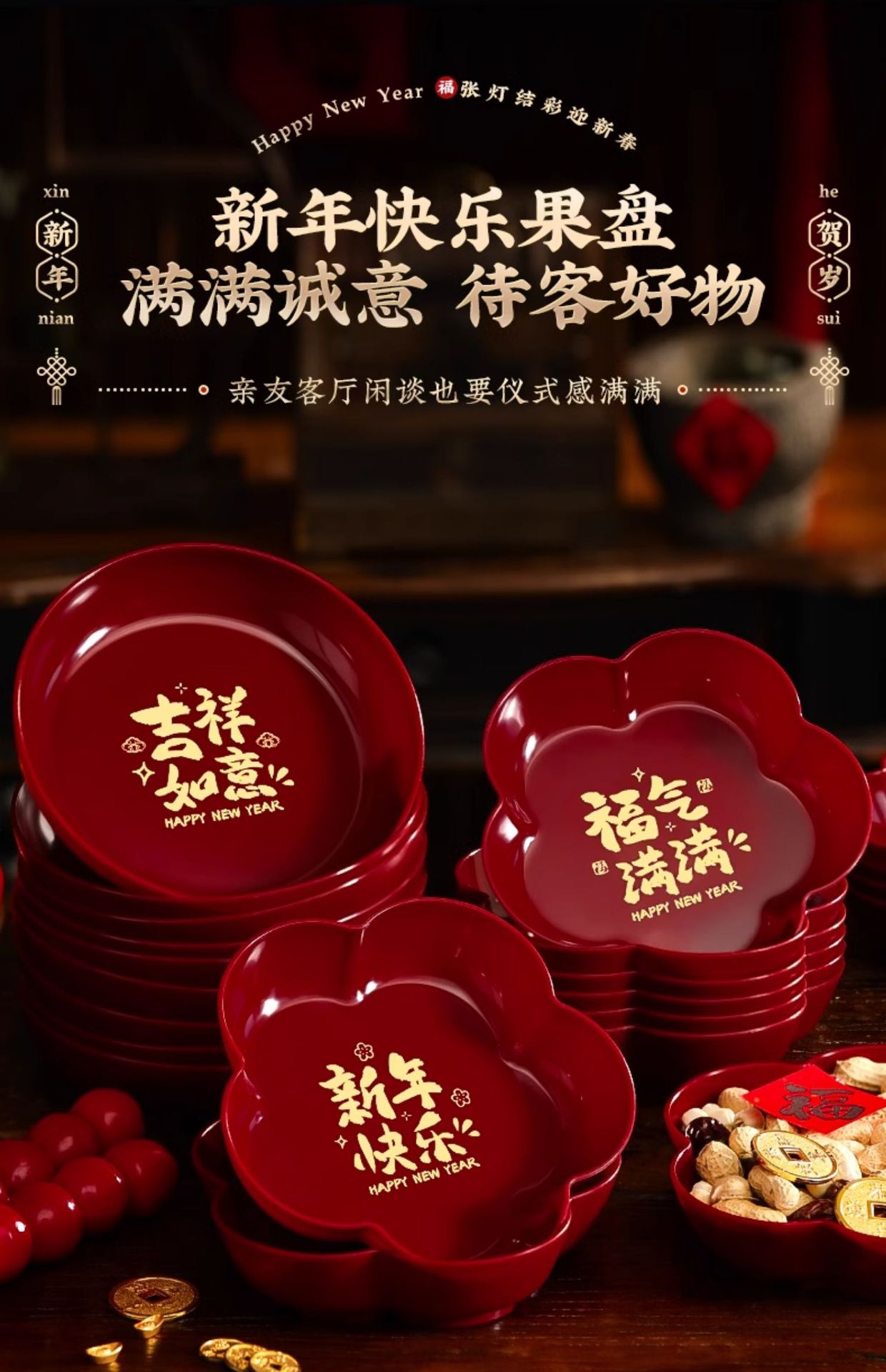 【新年装饰果盘】过年糖果零食家用干果红托盘 客厅茶几收纳盒春节用品