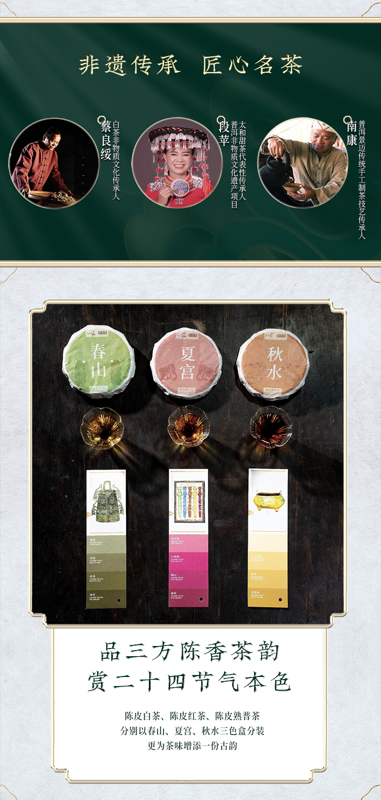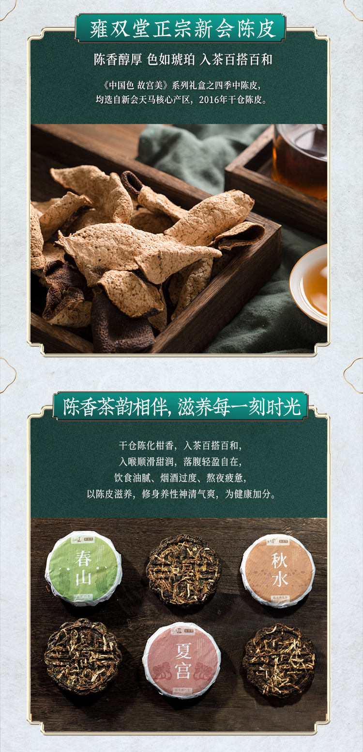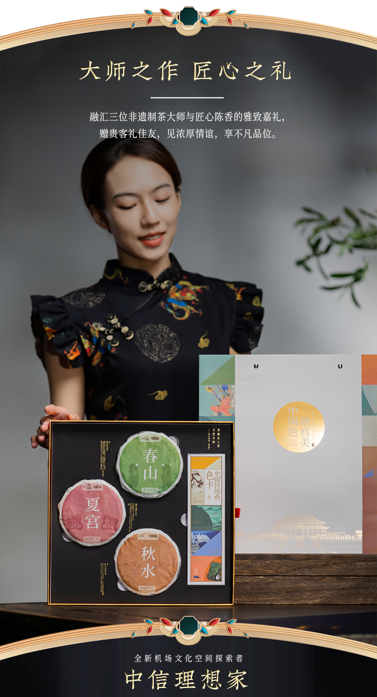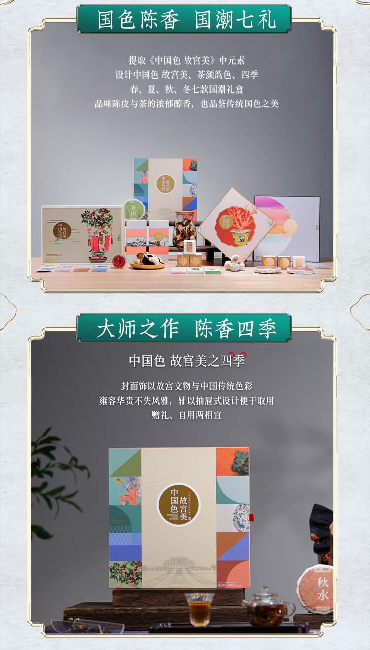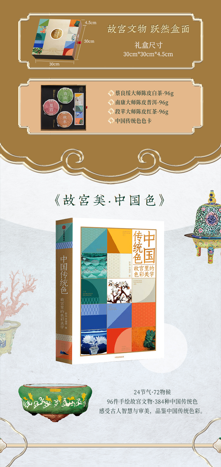 中国色故宫美文创礼盒 非遗大师陈皮普洱白茶红茶茶饼礼盒装288g