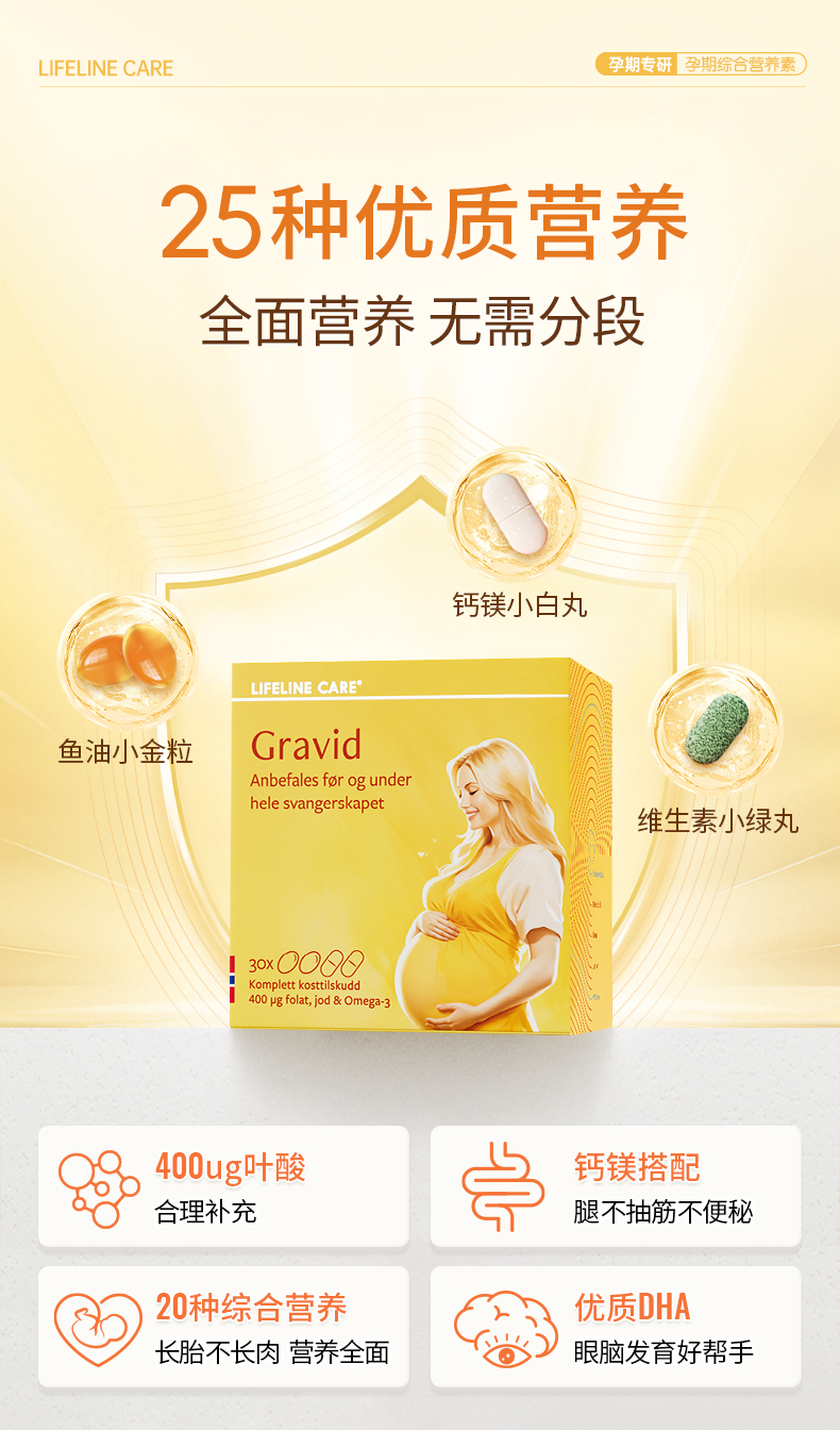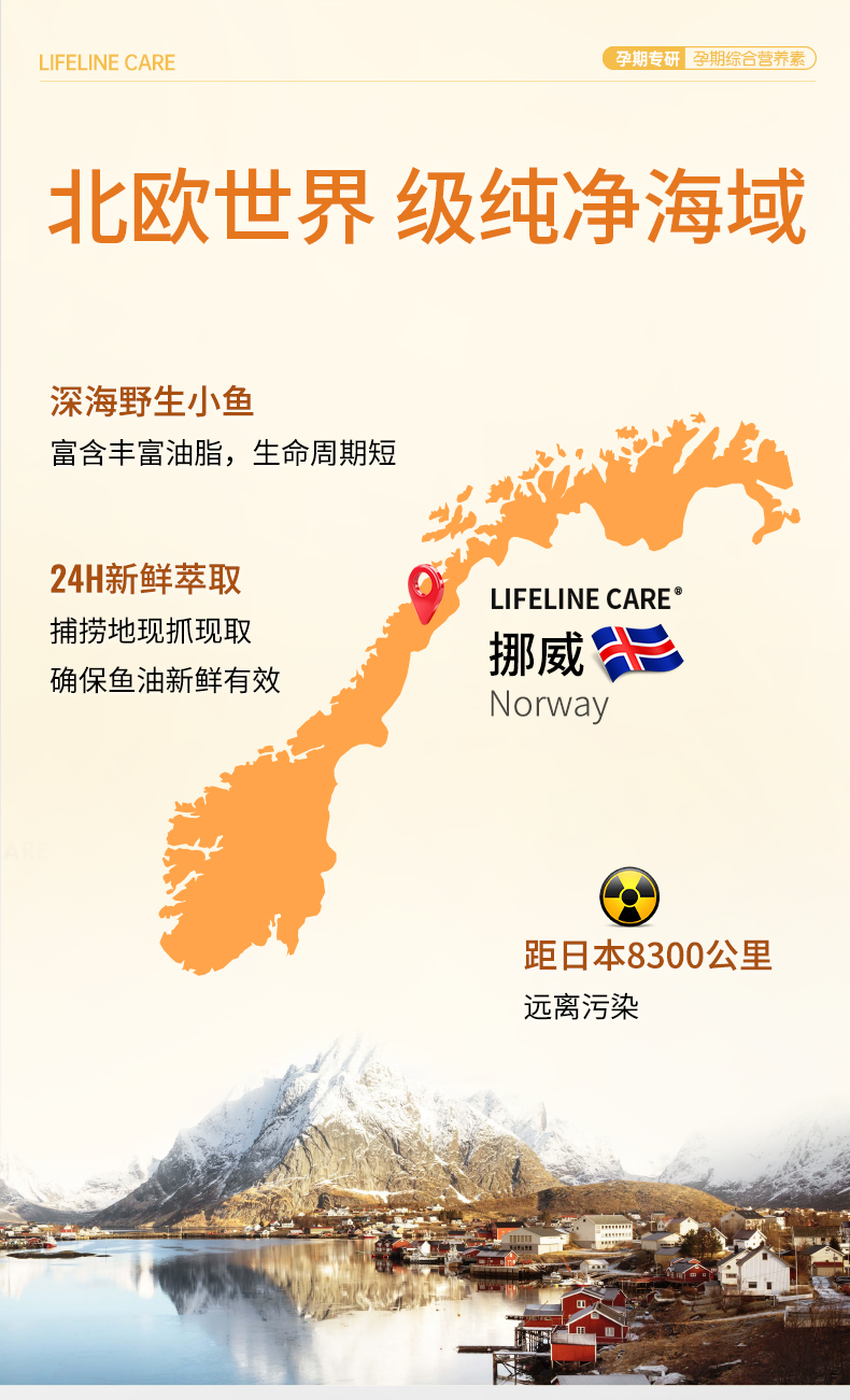 Lifelinecare生命力挪威进口伽鱼油DHA孕妇专用孕期营养品维生素叶酸钙