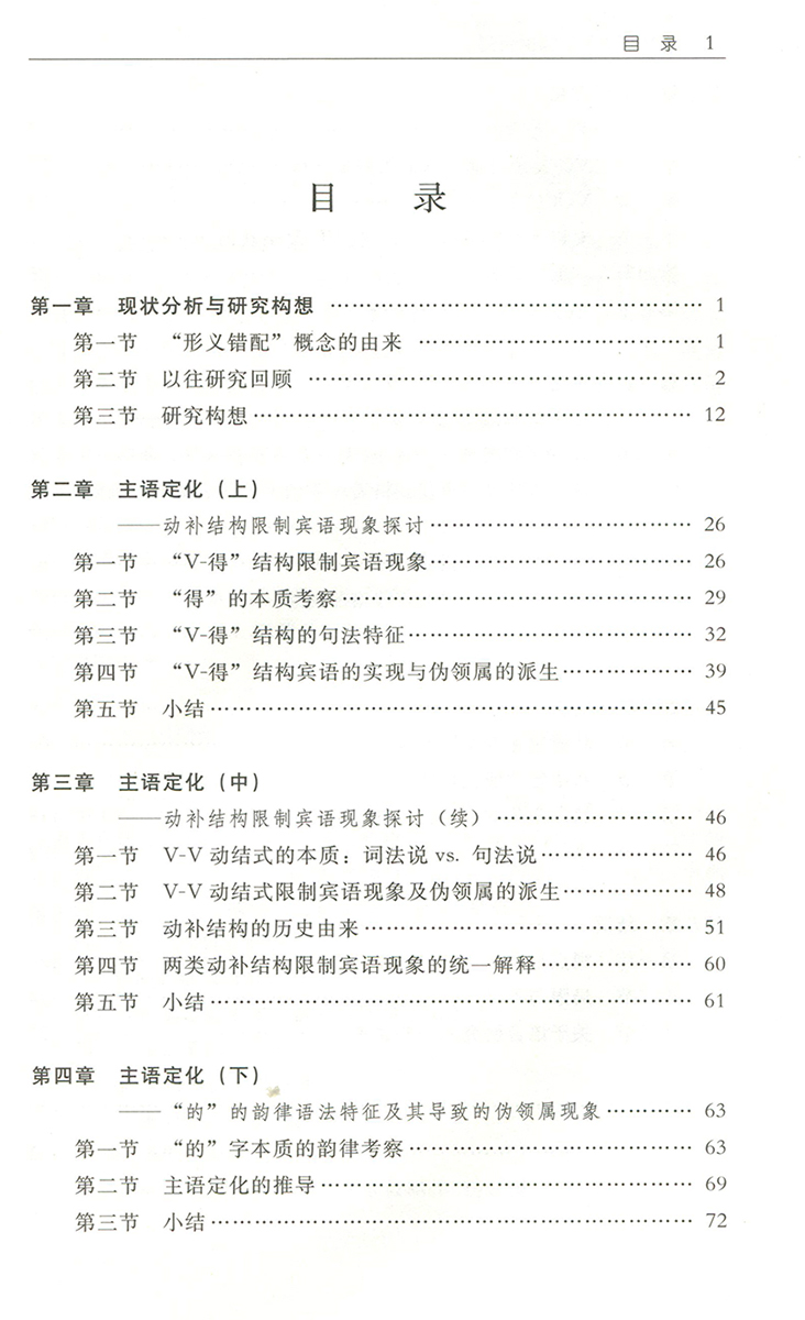 本书主要是在生成语言学理论的宏观指导下对现代汉语中的形义错配现象进行句法解释的,运用句法-韵律接口理论、信息结构、语义框架以及汉语历时史料进行深入的多角度考察,对各类形义错配现象做出了很好的阐释。该书突破了以往形义错配研究的局限,将研究对象扩展到四类形义错配现象,即主语定化、宾语定化、状语定化、补语定化(汉语的语料中只有这四种)。更为难能可贵的是其研究的系统性,该书对各类句子成分句法地位和语义地位逐一进行了系统考察,说明了各种错配现象之间的关联性,把以往的四类形义错配统一到了一个理论框架之下,即信息结构与句法、韵律的互动。
